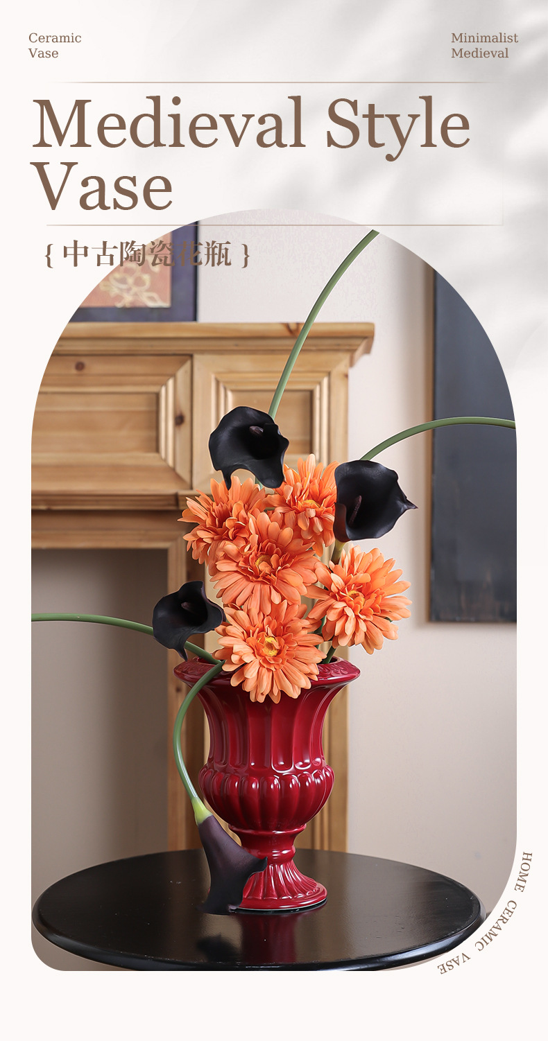 유럽식 꽃병 세라믹 고급 감각 중간 고대 높은 외관 가치 홈 장식 빛 럭셔리 꽃병 살포 꽃 냄비 빈티지스토어 가기
