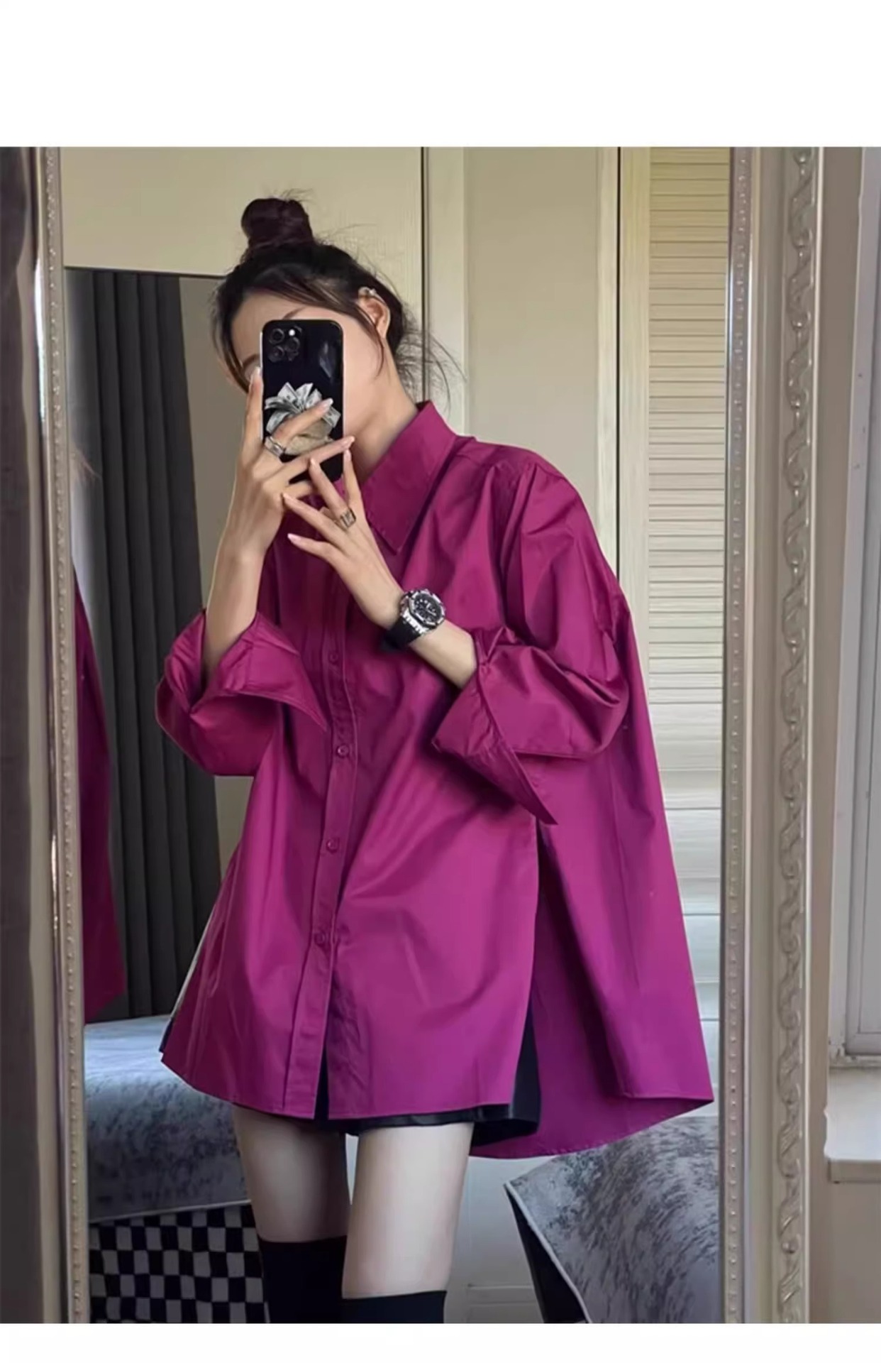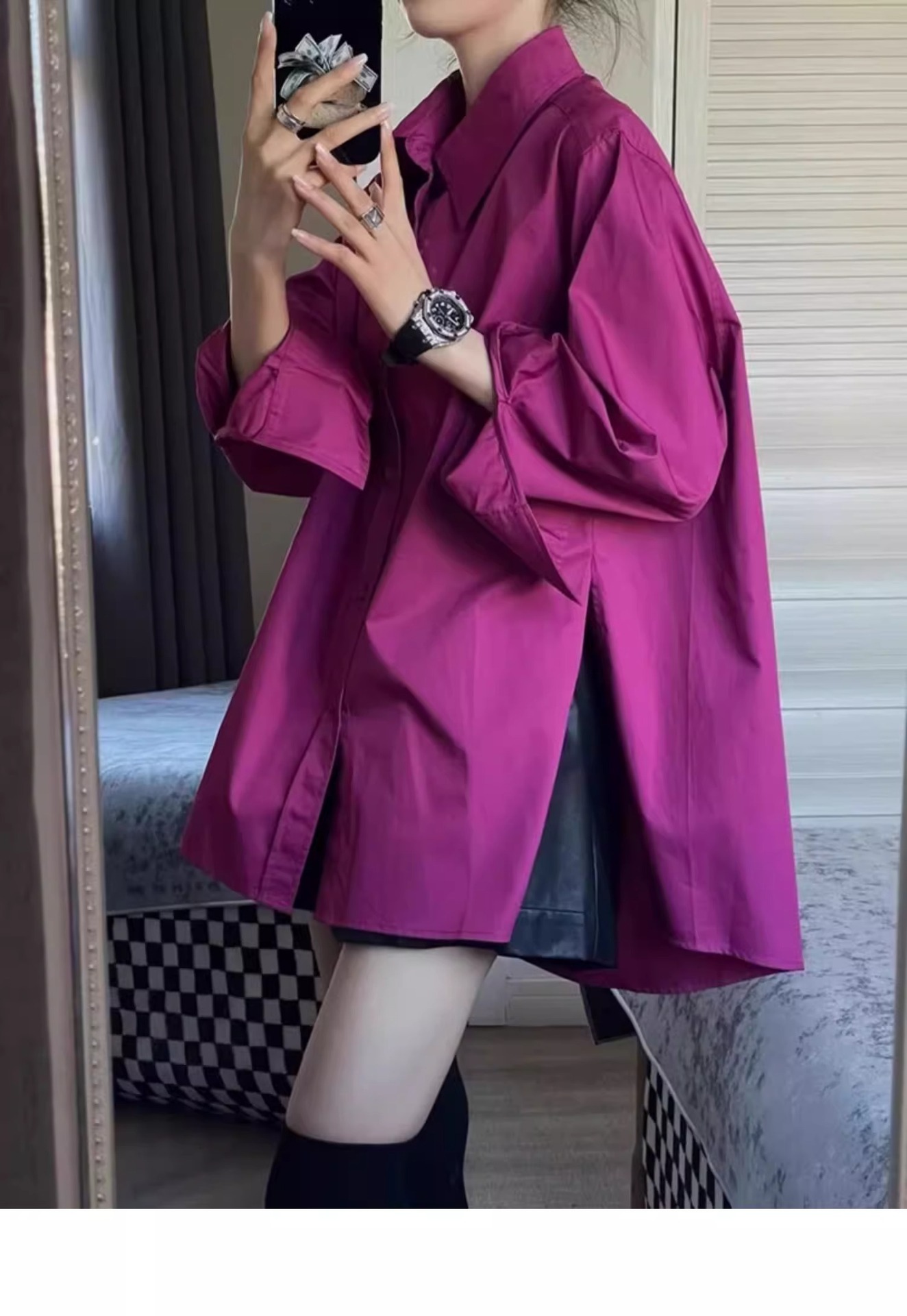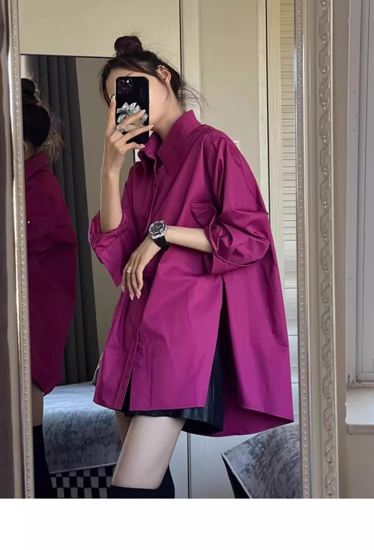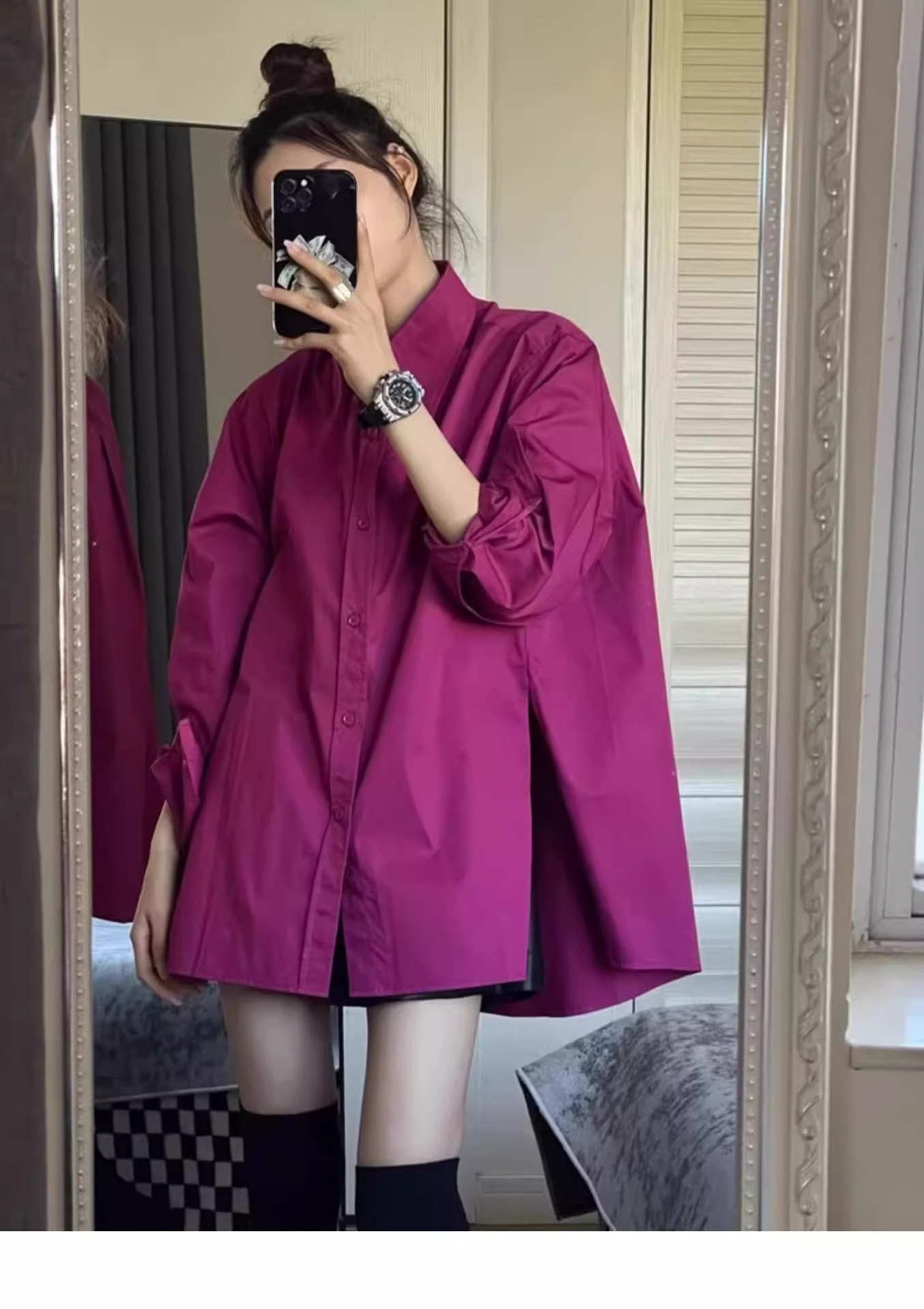고급 가벼운 럭셔리 로즈 레드 셔츠 디자인 센스 탑 봄과 가을 독특한 세련된 캐주얼 선스크린 코트 트렌디스토어 가기