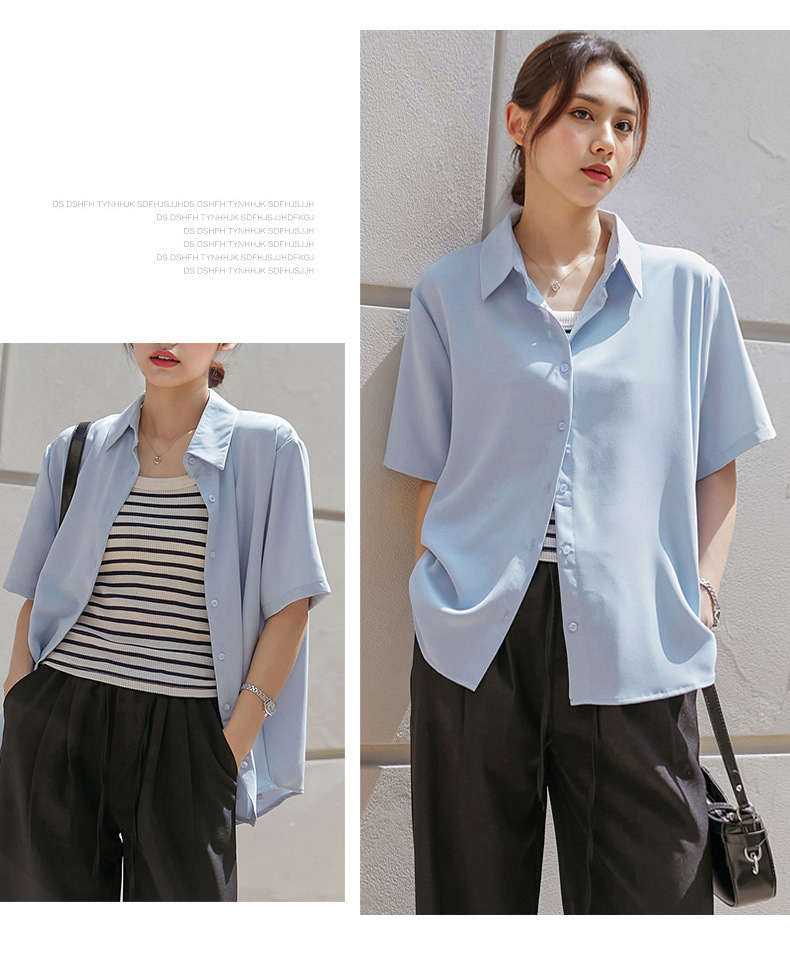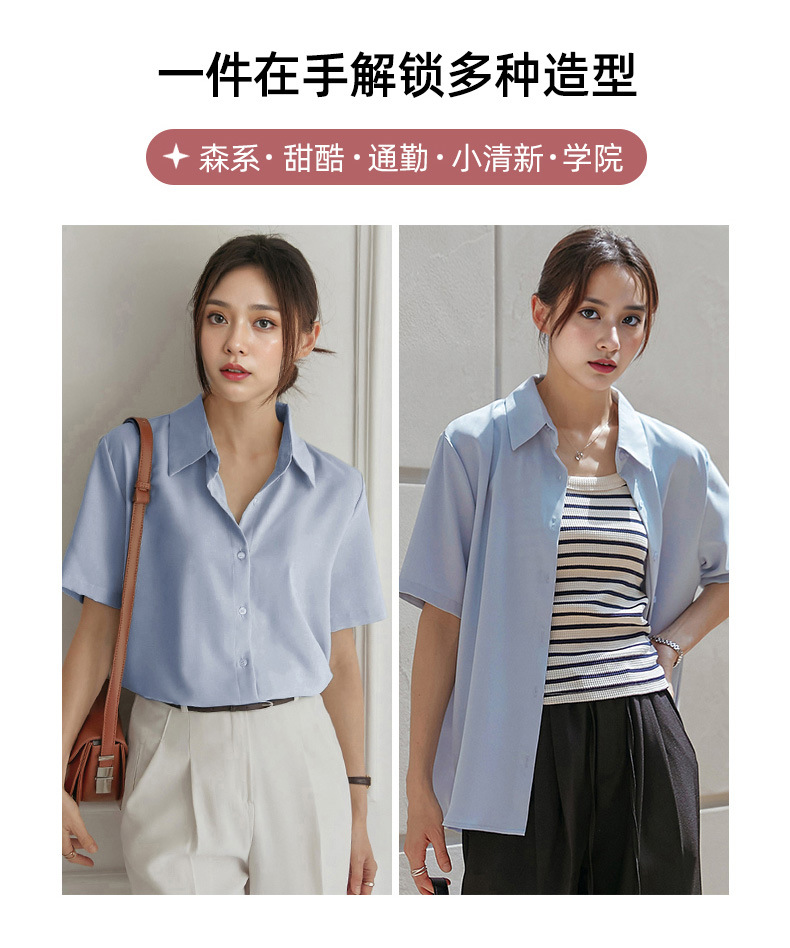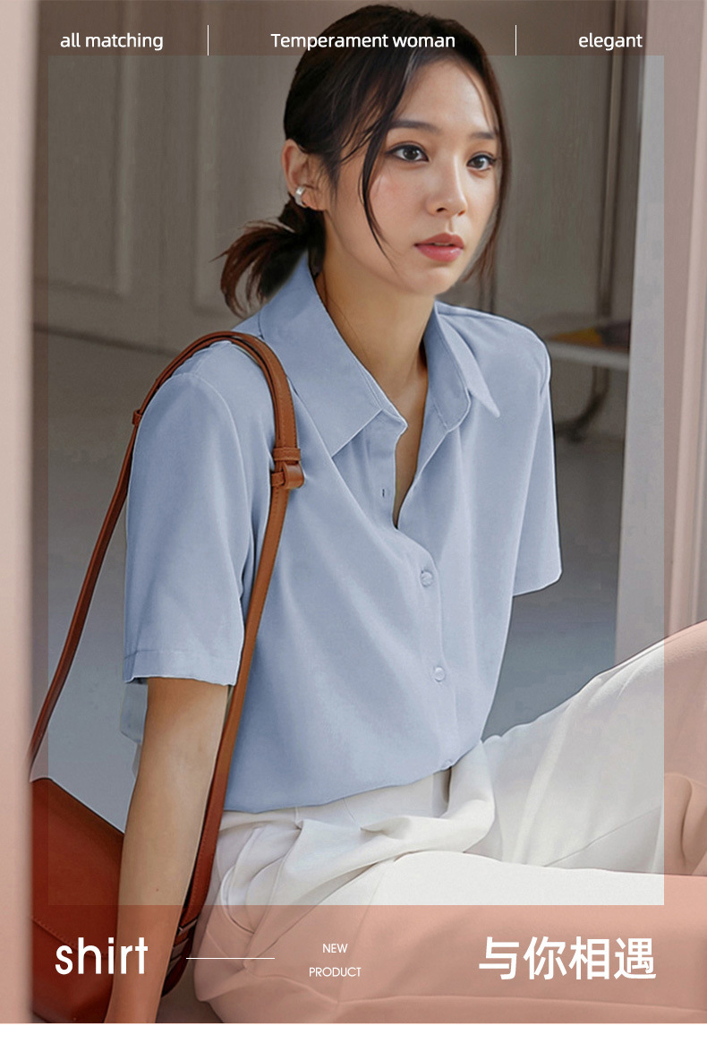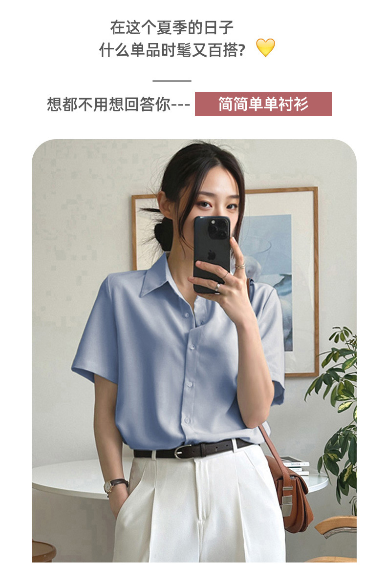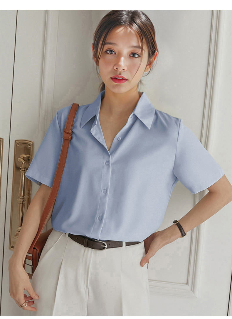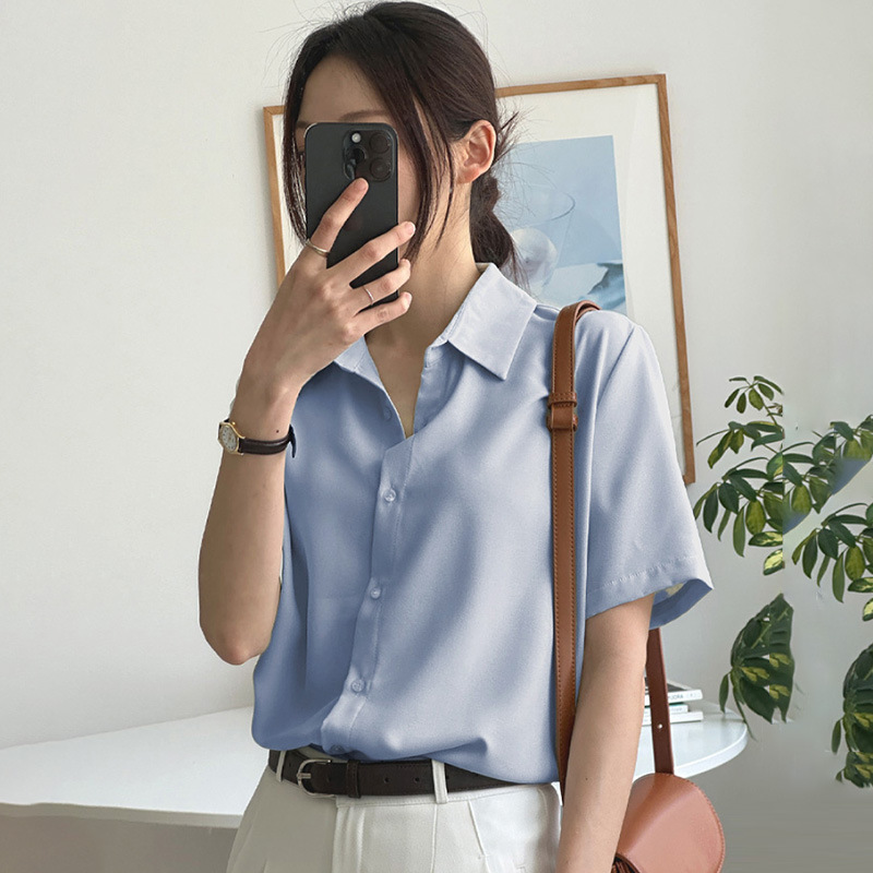 여성용 한국 스타일 통근 루즈 반팔 셔츠 2025 여름 얇은 디자인, 다용도, 패셔너블하고 달콤한 연령 감소 셔츠스토어 가기