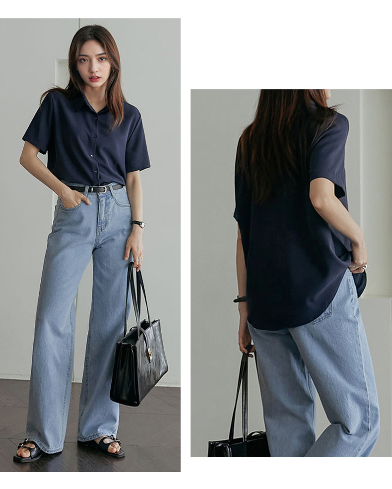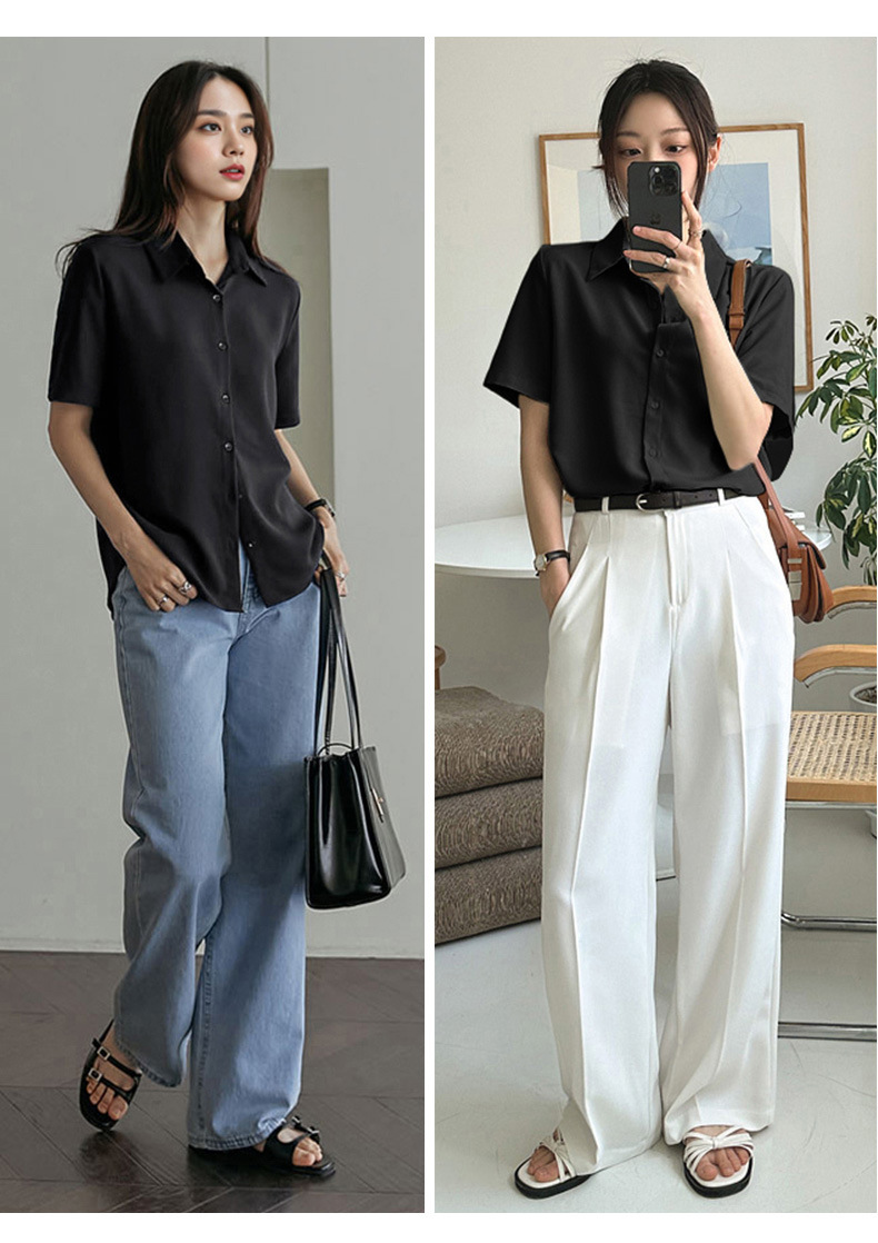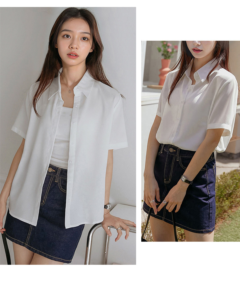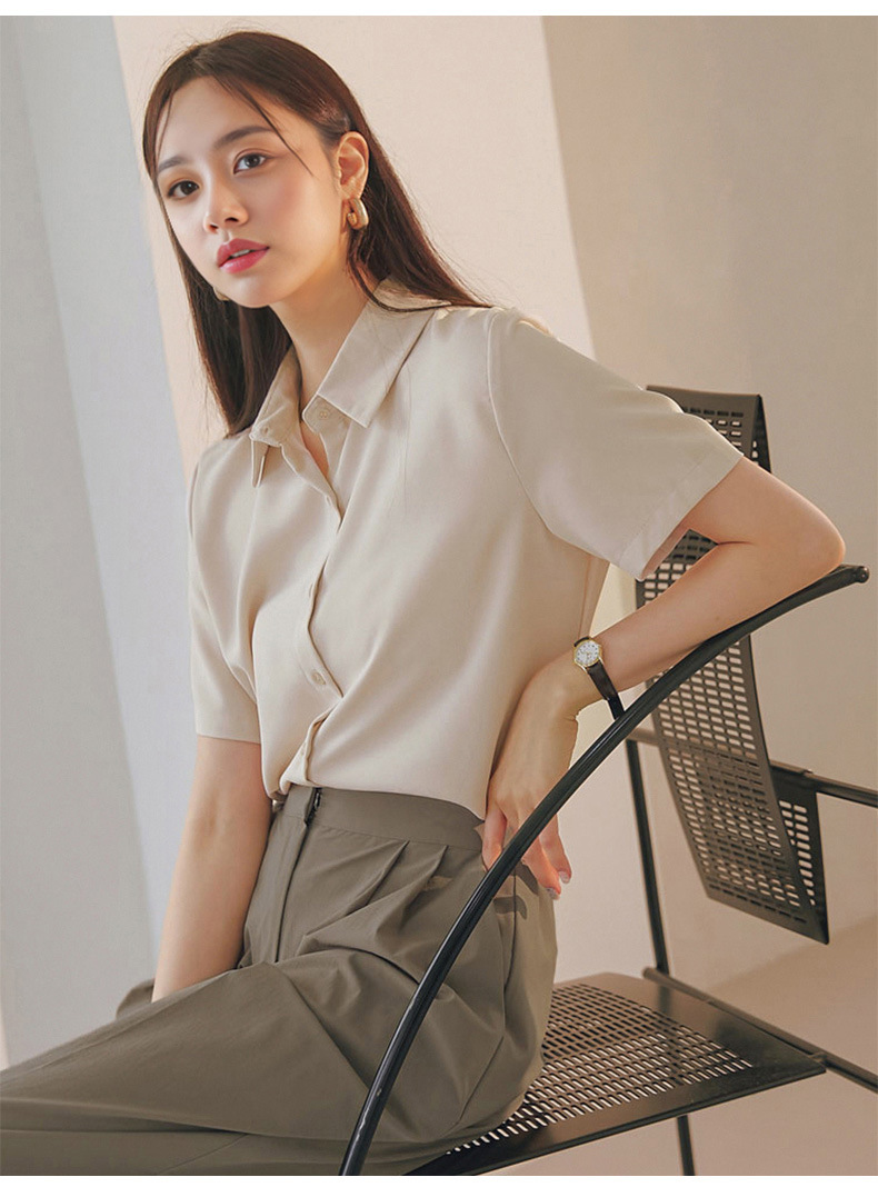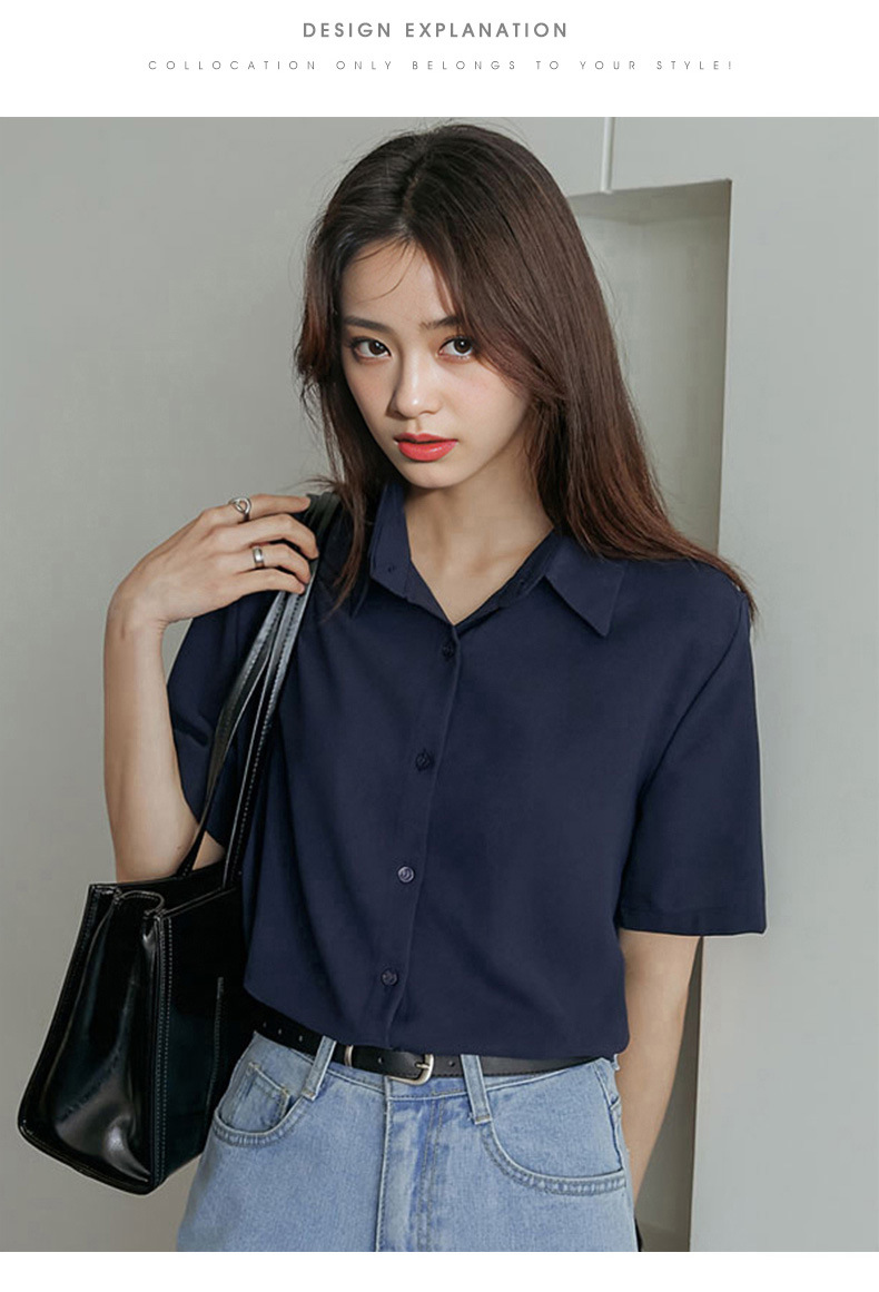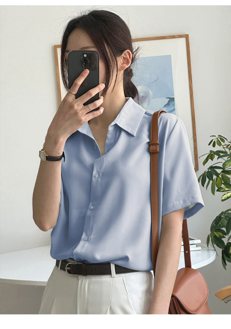 여성용 한국 스타일 통근 루즈 반팔 셔츠 2025 여름 얇은 디자인, 다용도, 패셔너블하고 달콤한 연령 감소 셔츠스토어 가기
