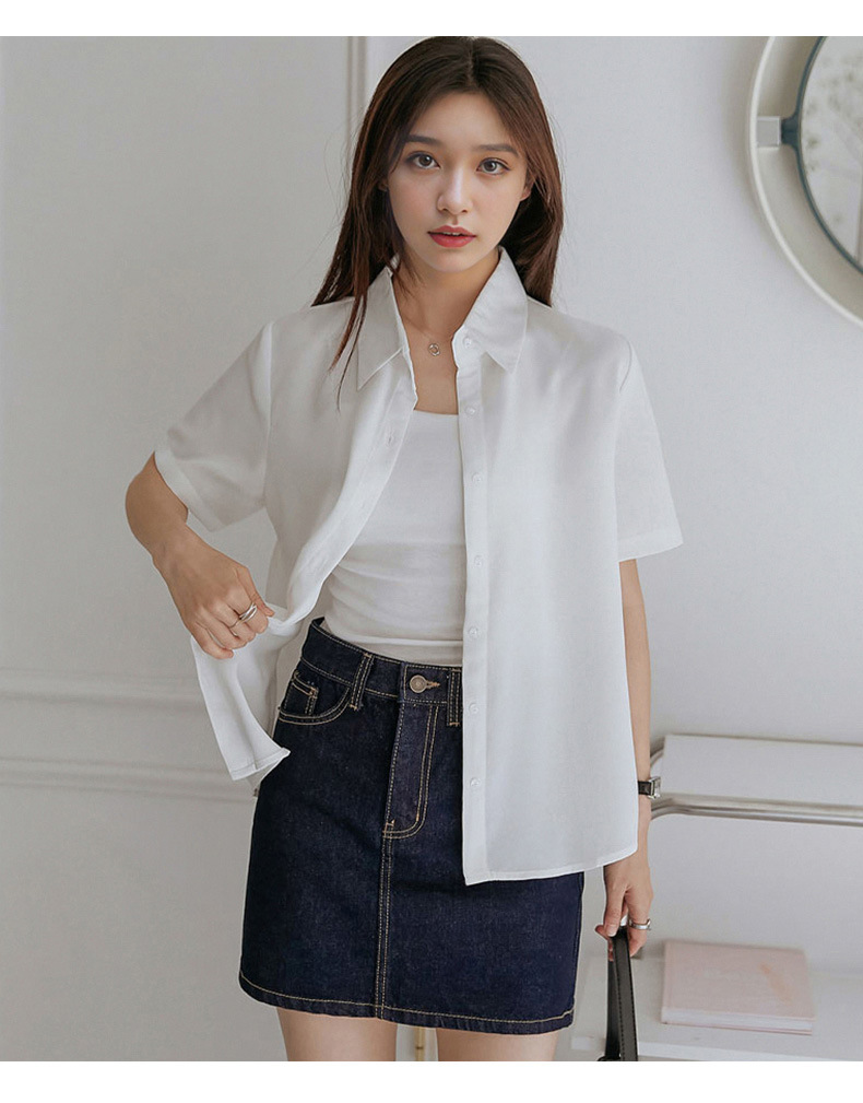 여성용 한국 스타일 통근 루즈 반팔 셔츠 2025 여름 얇은 디자인, 다용도, 패셔너블하고 달콤한 연령 감소 셔츠