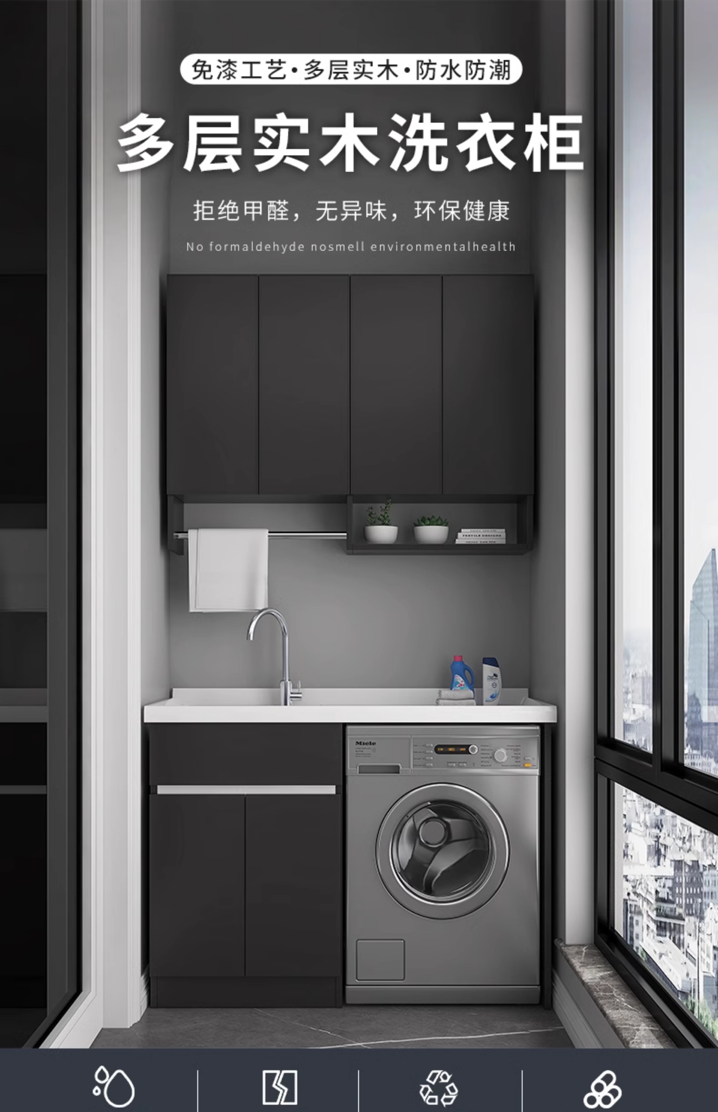 9C 세탁기 캐비닛 발코니 세탁 캐비닛 솔리드 우드 드럼 동반자 세탁기 욕실 캐비닛 조합 세트 목록스토어 가기