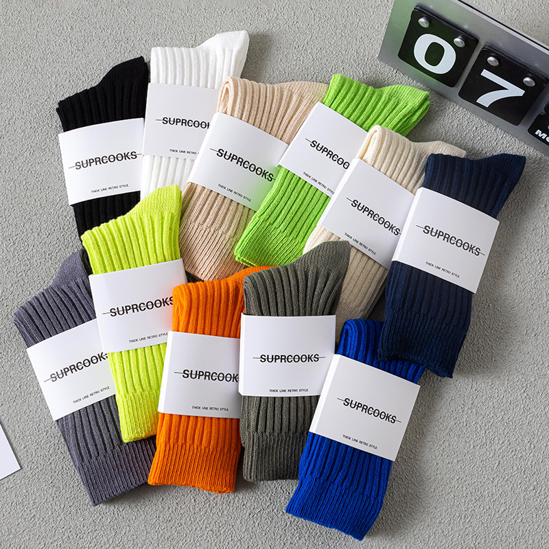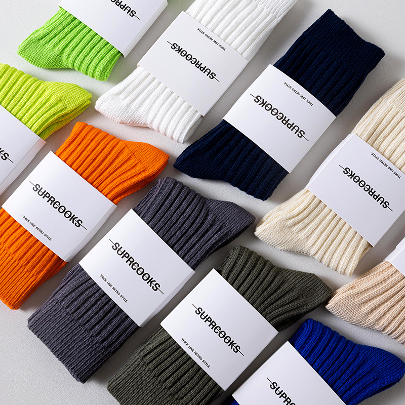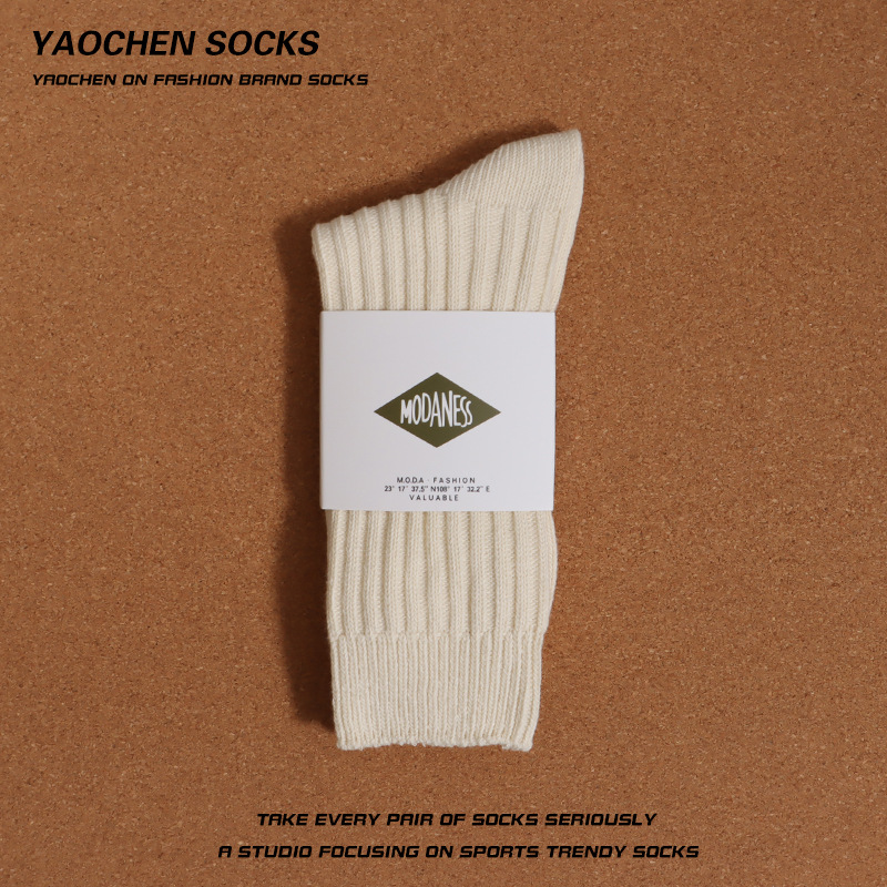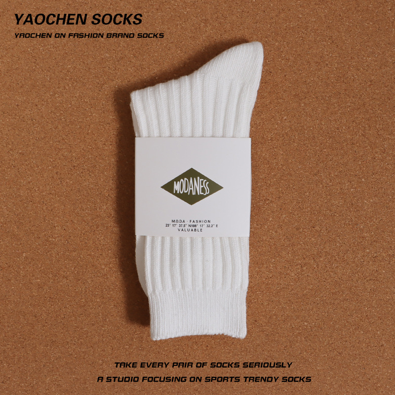 쌓인 양말 어린이 중간 길이 양말 여름 일본식 두꺼운 니트 스타킹 남성용 트렌디 유 웬레 화이트 코튼 양말