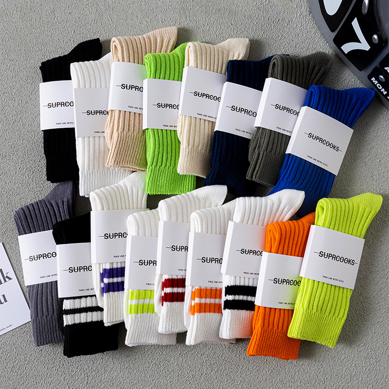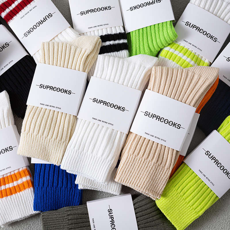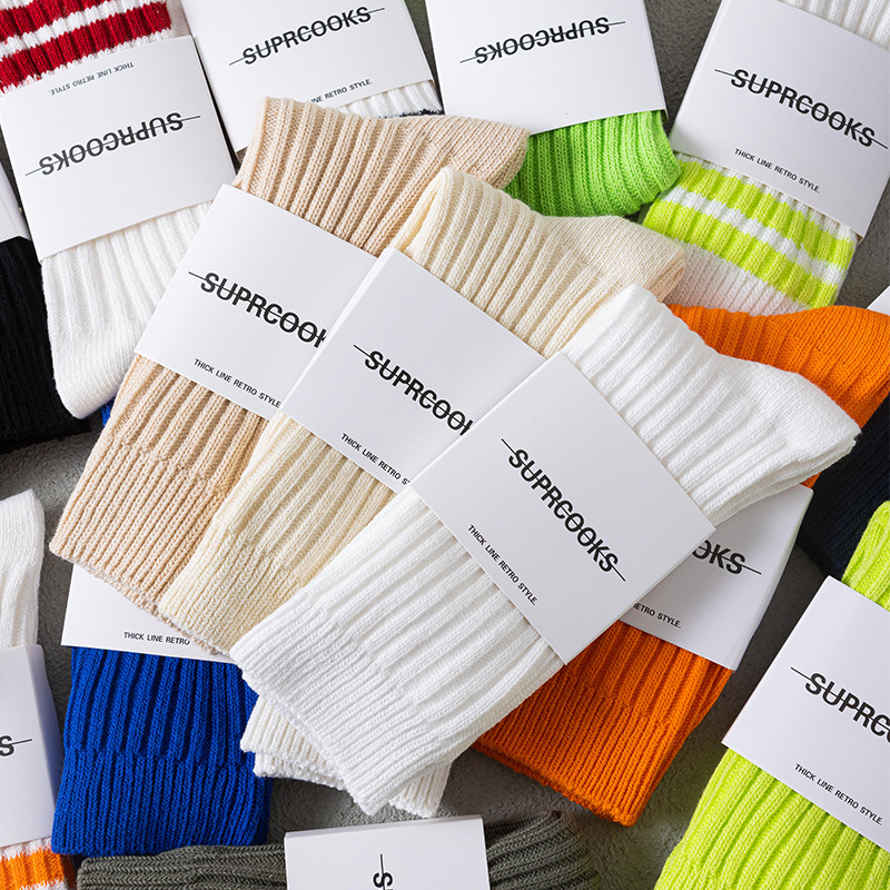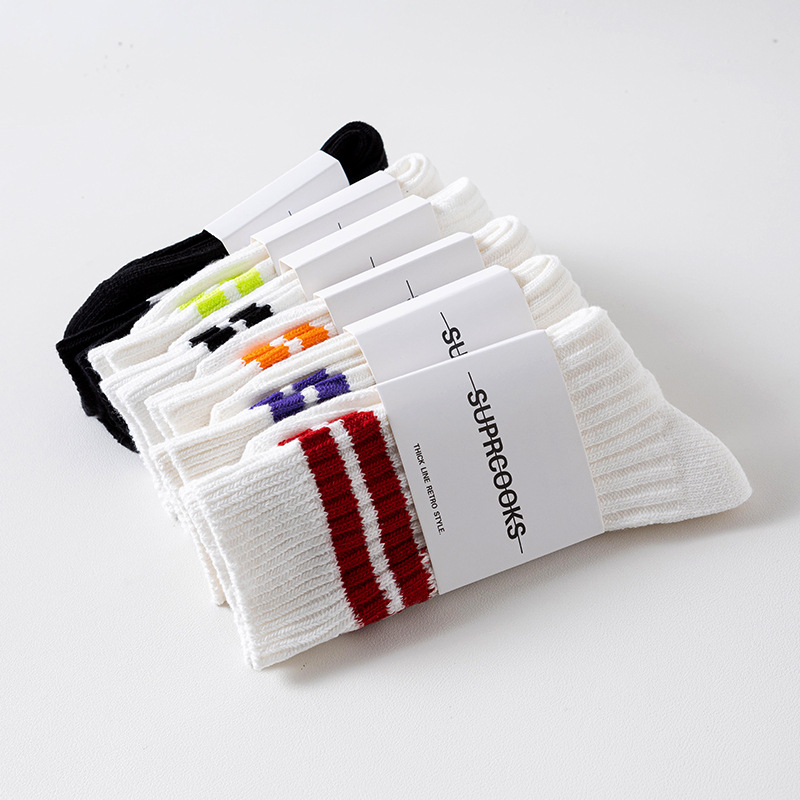 쌓인 양말 어린이 중간 길이 양말 여름 일본식 두꺼운 니트 스타킹 남성용 트렌디 유 웬레 화이트 코튼 양말스토어 가기
