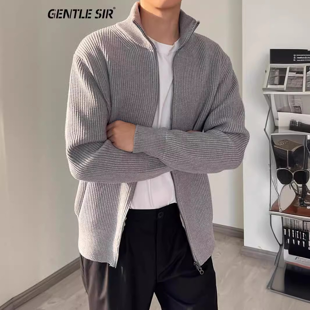 Ma's Four Corners Spring Double Zipper Half High Collar 따뜻한 커플 Takak 무거운 카디건 스웨터 재킷 남자 스웨터