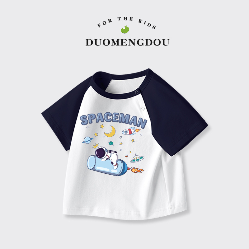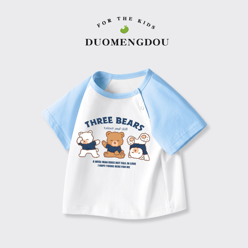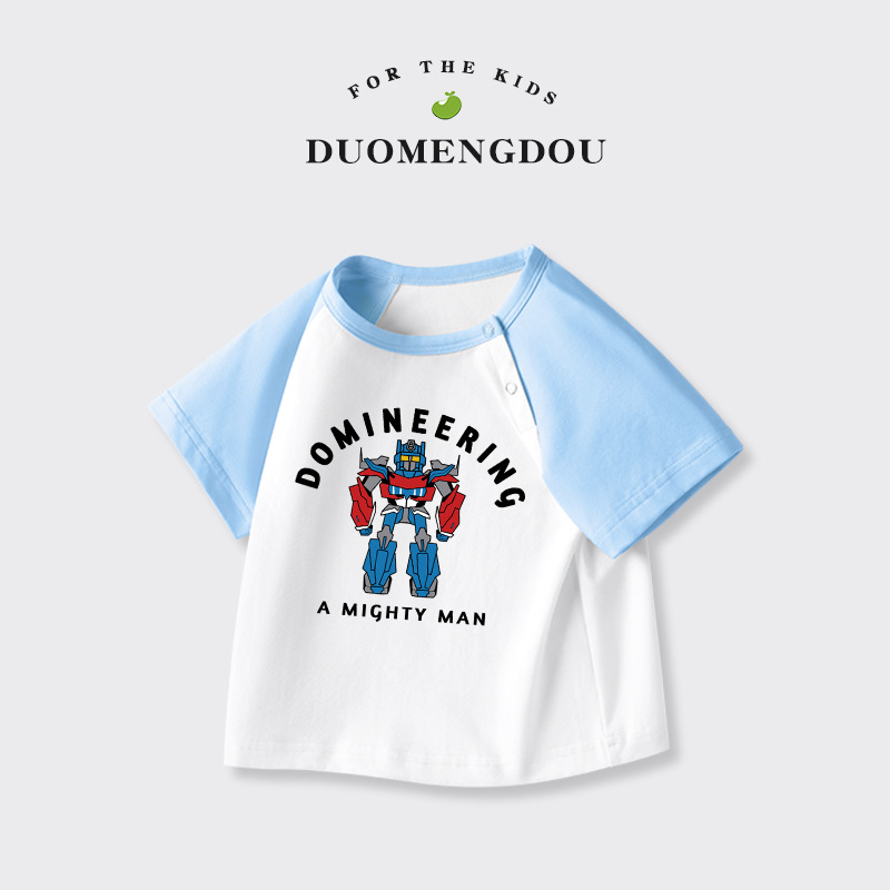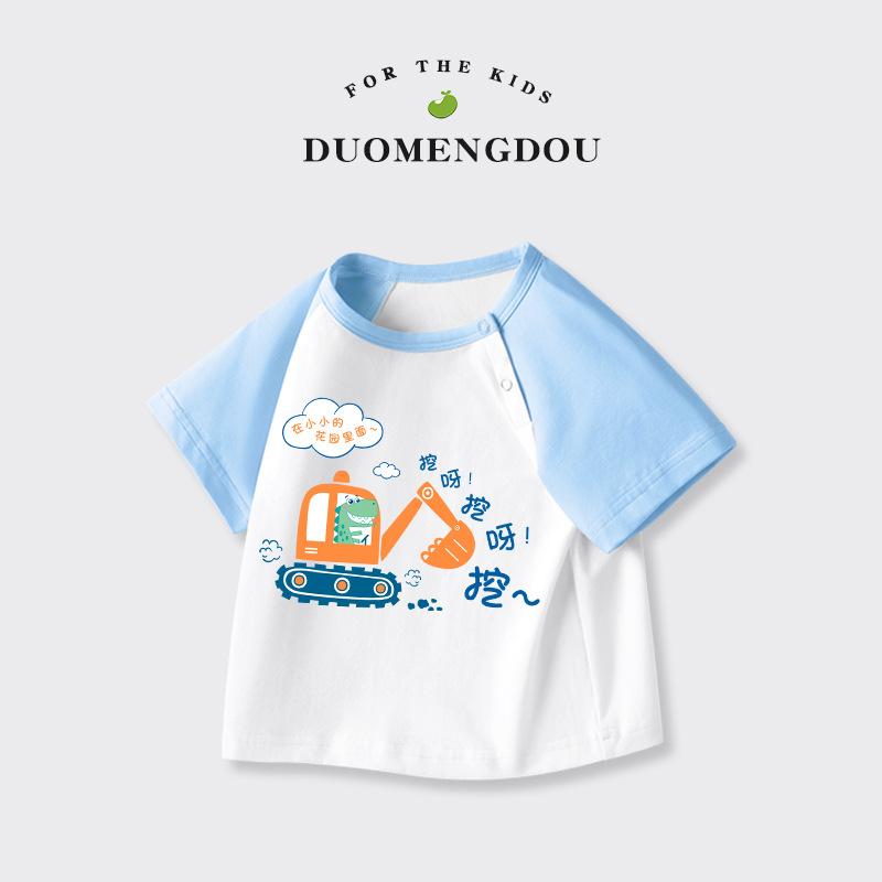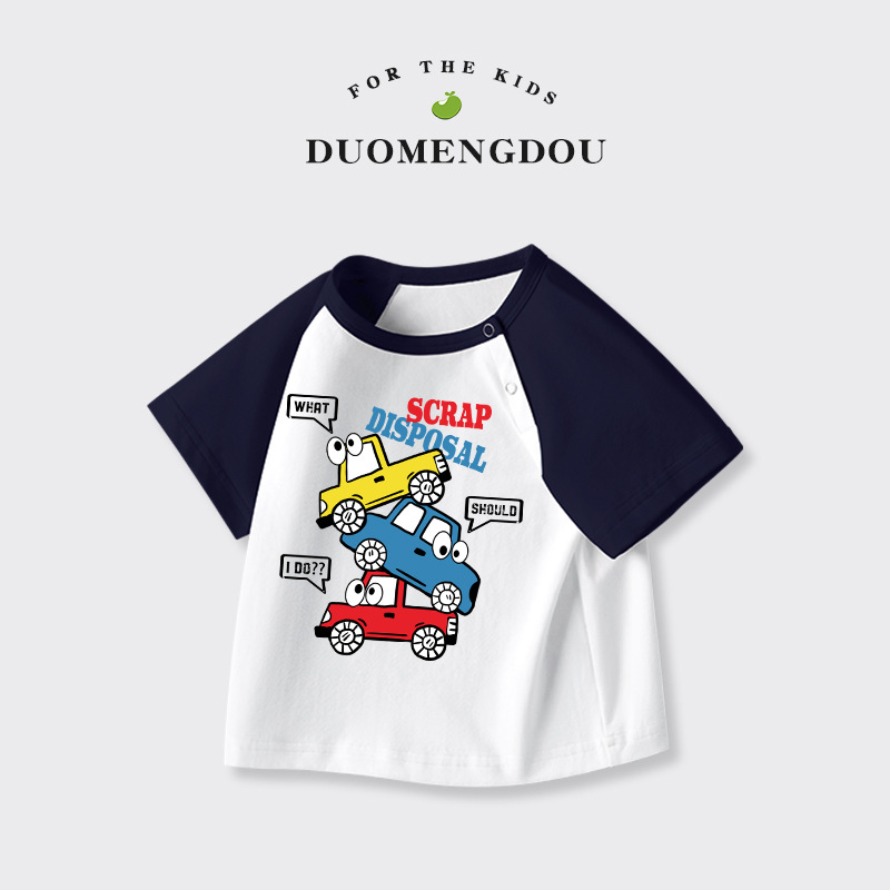 Duomengdou 아동 의류 아동 티셔츠 소년 라운드 넥 스포츠 탑 아동 베이비 퓨어 코튼 반팔 여름 의류 B