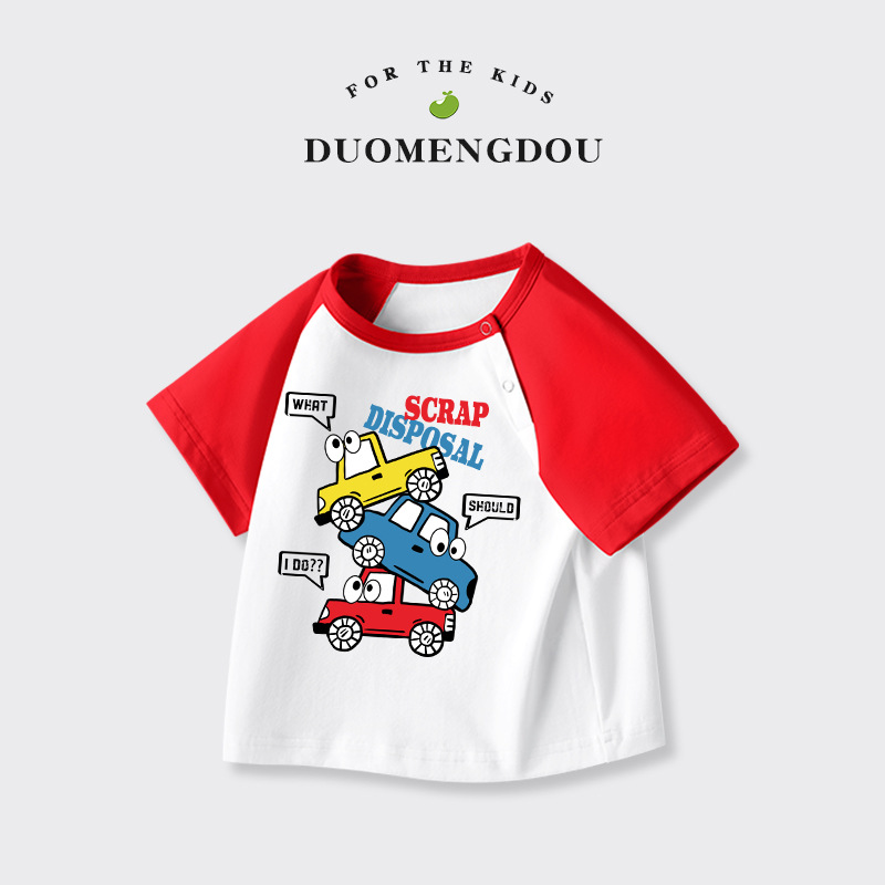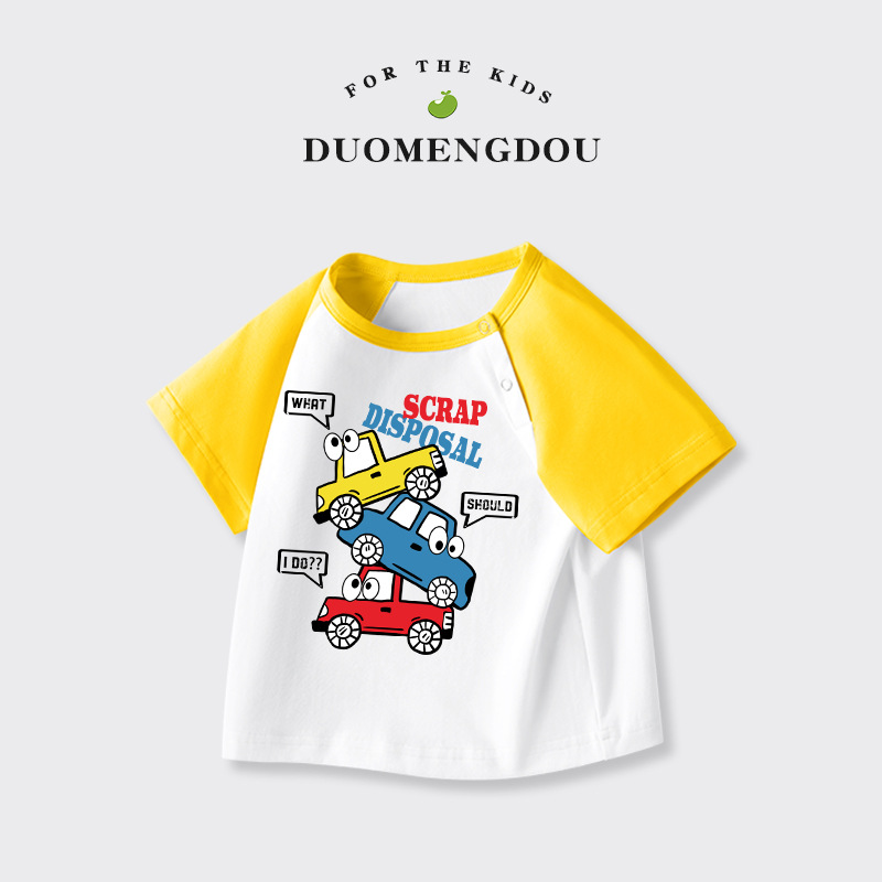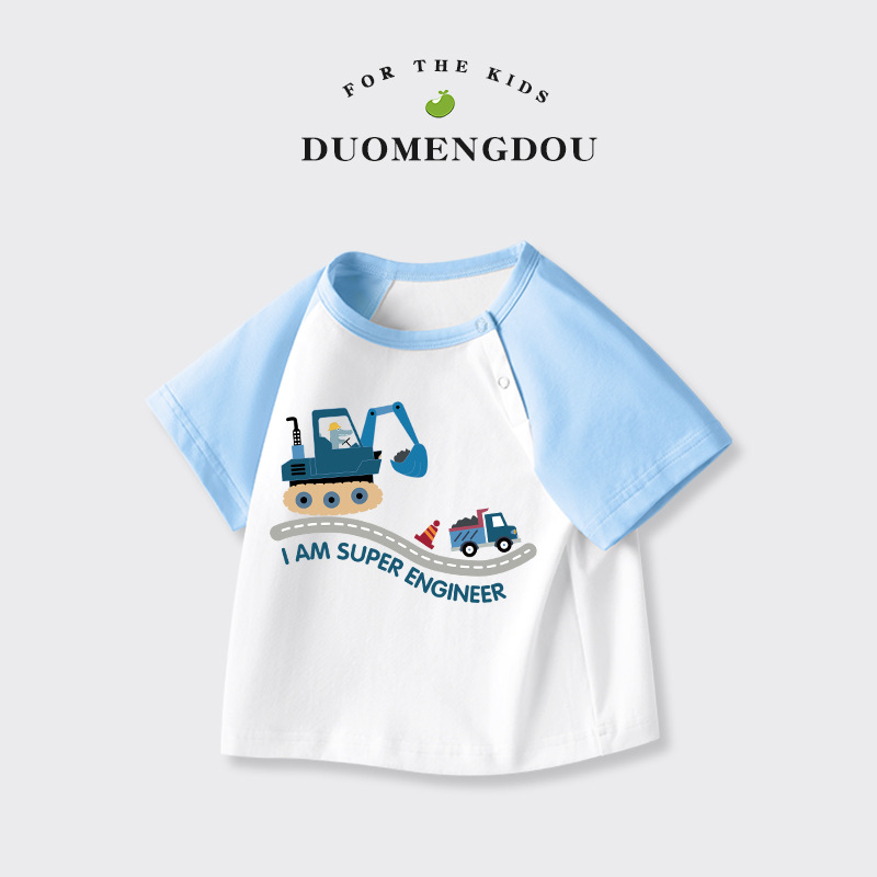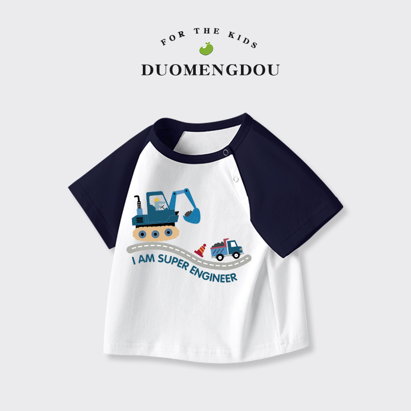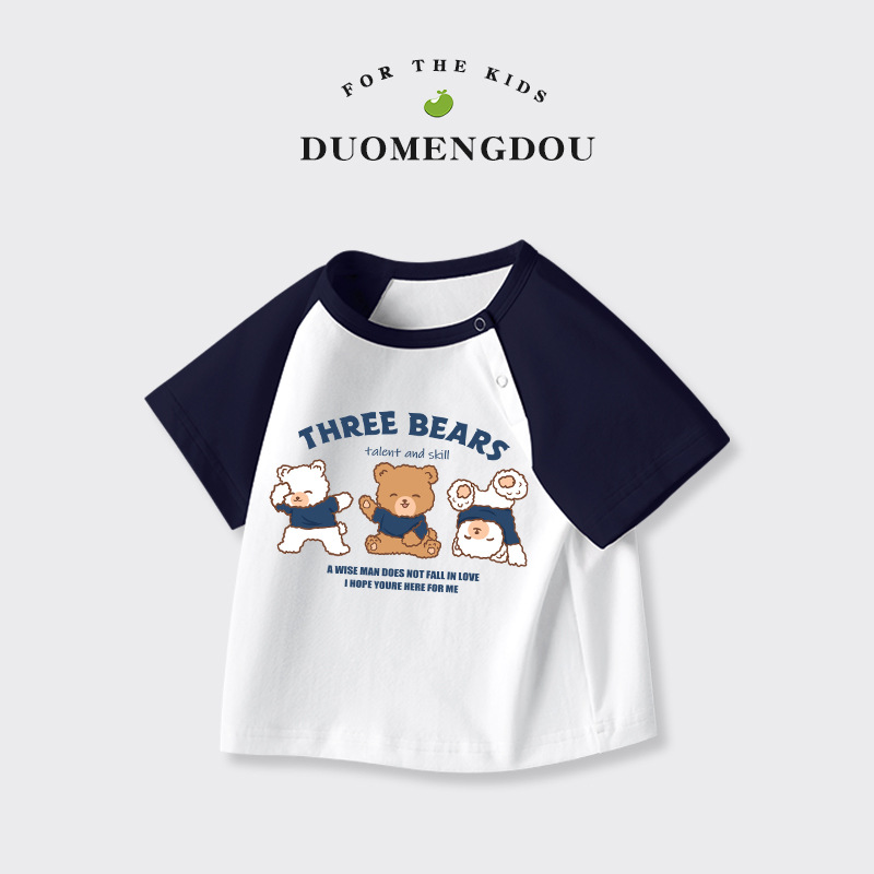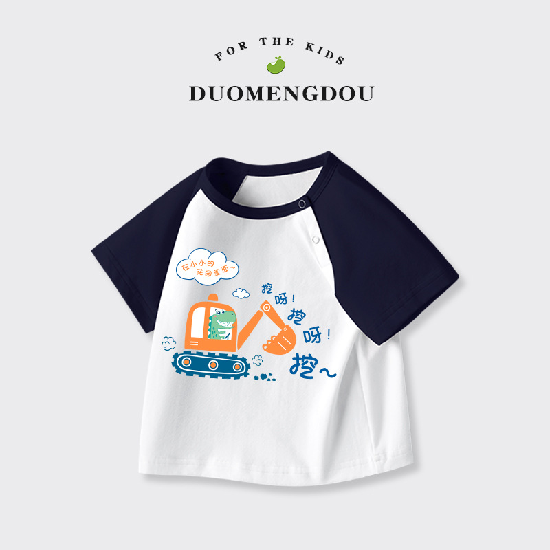 Duomengdou 아동 의류 아동 티셔츠 소년 라운드 넥 스포츠 탑 아동 베이비 퓨어 코튼 반팔 여름 의류 B