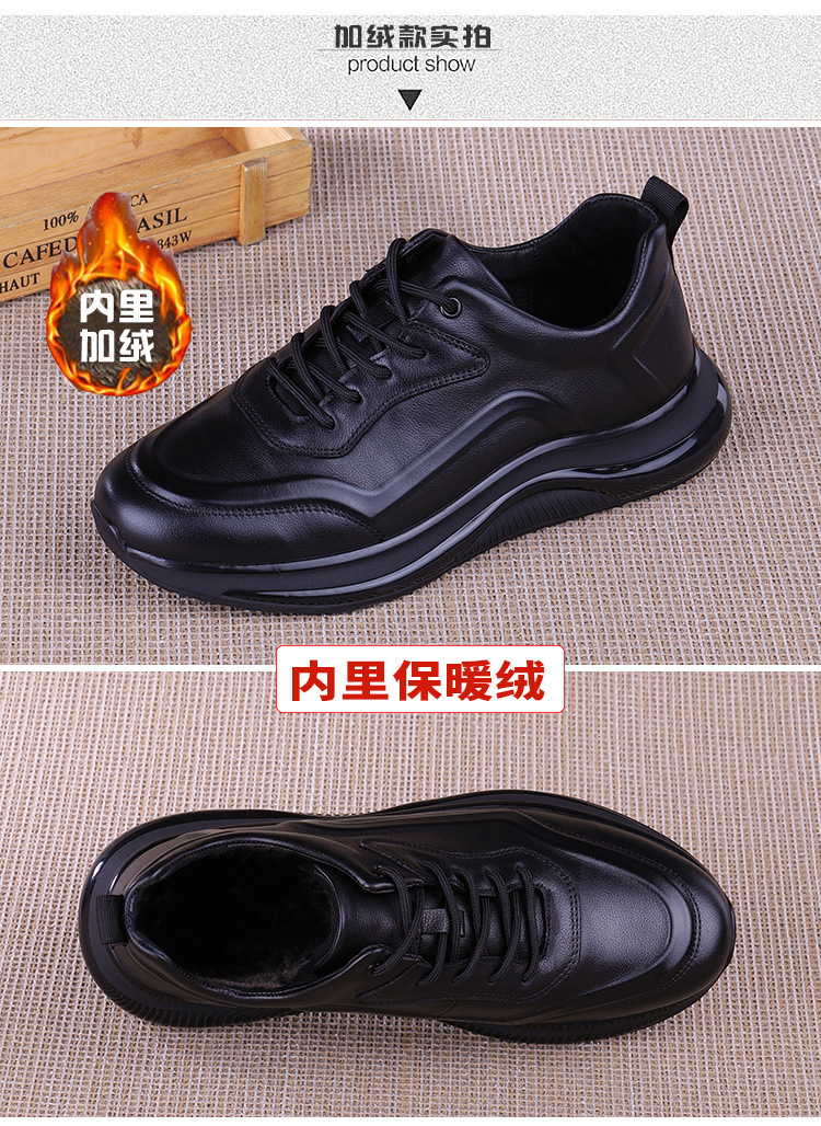 천연 소가죽 운동화 남성용 가을 통기성 두꺼운 밑창 초경량 캐주얼화 러닝화 겨울용 플리스 안감