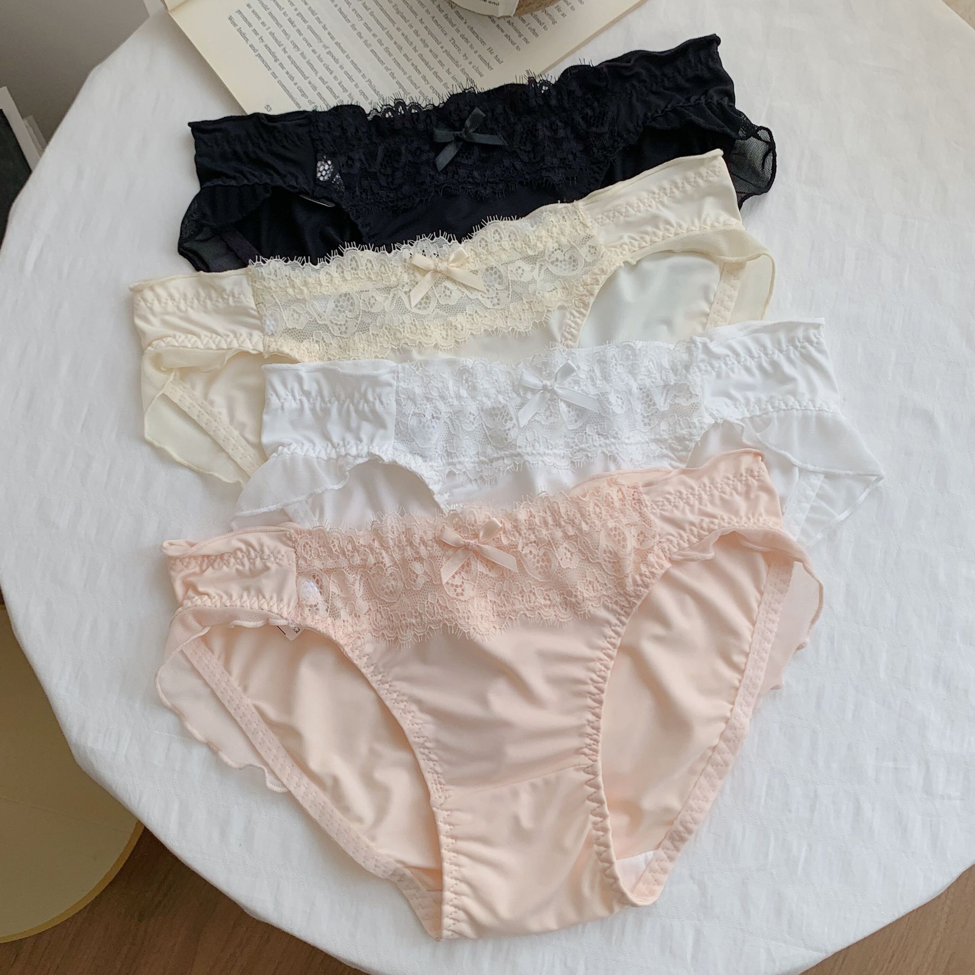 프랑스 스타일 섹시한 레이스 활 순수한 욕망 통기성 적은 여성 빠른 건조 새로운 편안한 낮은 허리 속옷 여성용 거즈