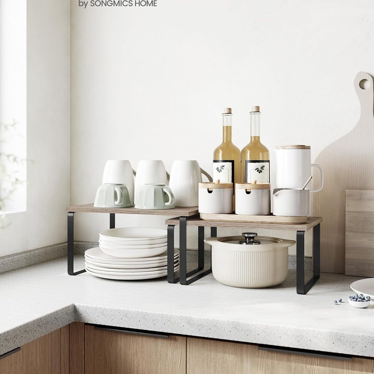 쌓을 수있는 캐비닛 스토리지 랙 2 조각 주방 캐비닛 랙 확장 가능한 주방 스토리지 랙 컨디셔닝 랙