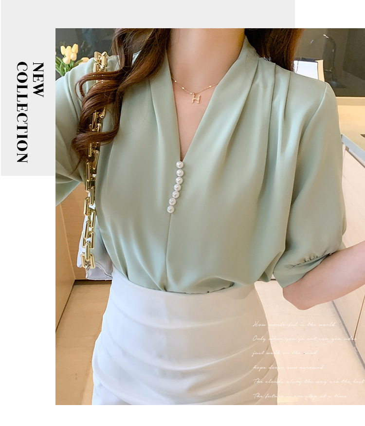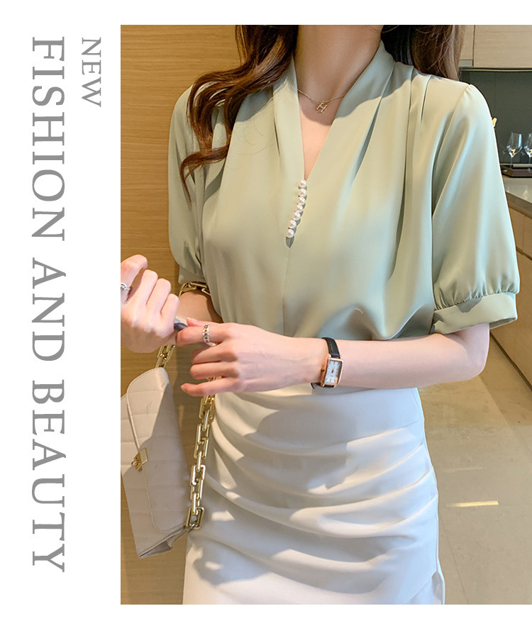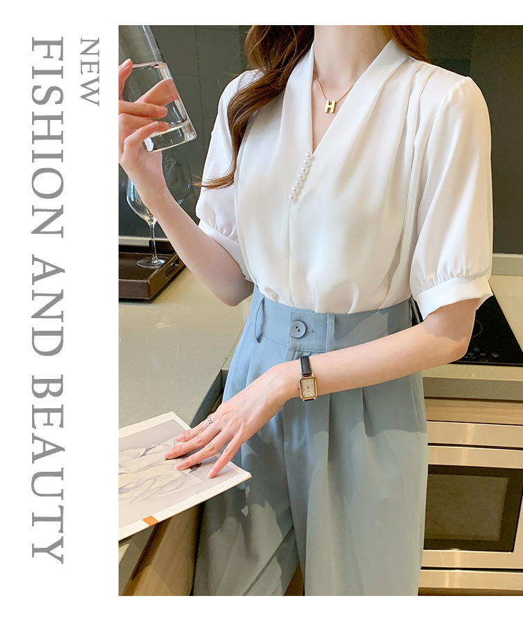 여성 반팔 쉬폰 셔츠 여성 여름 착용 2024 새로운 최고 디자인 틈새 여름 얇은 셔츠스토어 가기