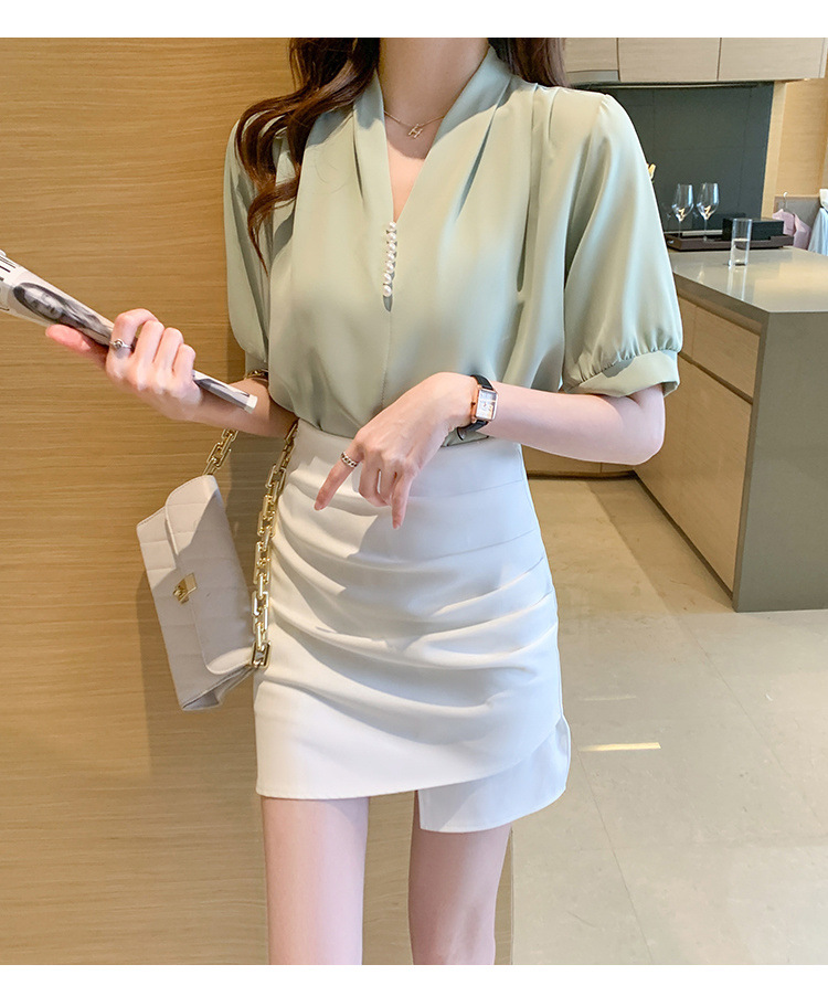 여성 반팔 쉬폰 셔츠 여성 여름 착용 2024 새로운 최고 디자인 틈새 여름 얇은 셔츠