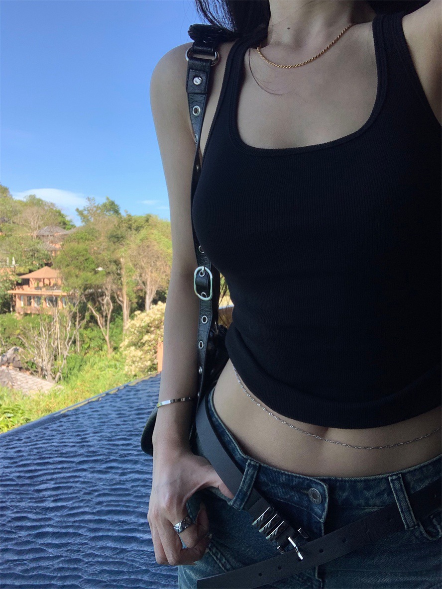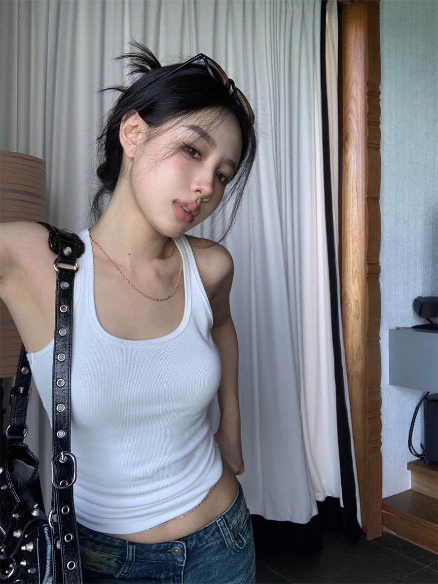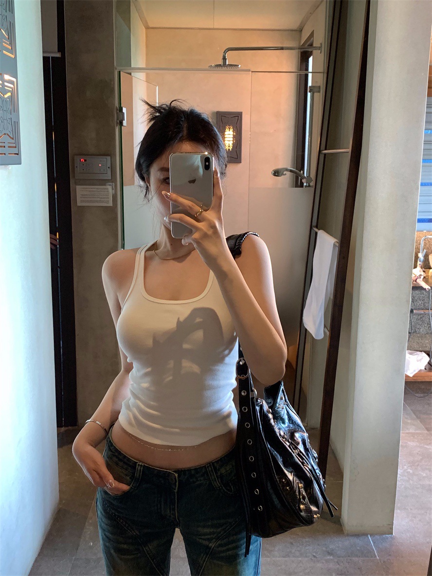 I 모양의 U-넥 캐미솔 여름 바닥 안티 라이트 내부 섹시한 뜨거운 소녀 가슴 패드 슬리밍 바깥 쪽 상단