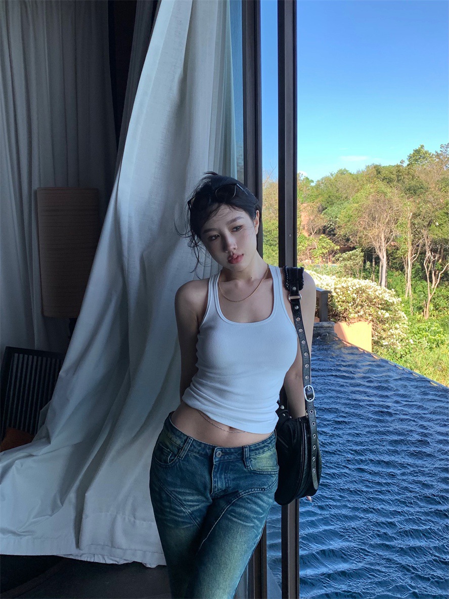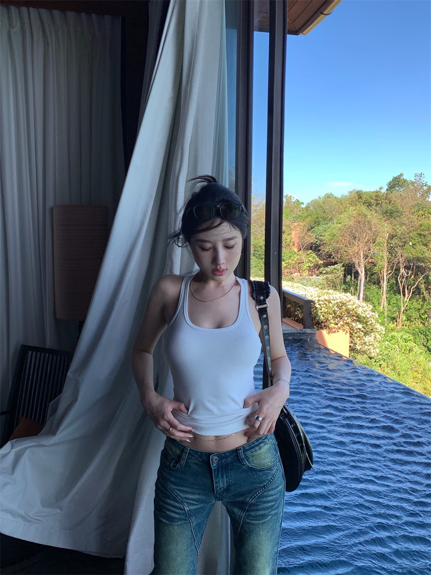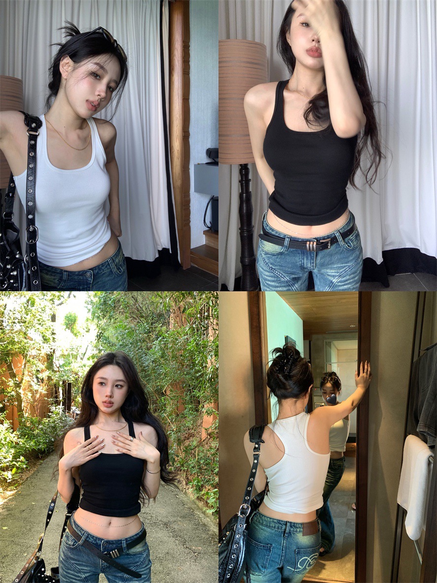 I 모양의 U-넥 캐미솔 여름 바닥 안티 라이트 내부 섹시한 뜨거운 소녀 가슴 패드 슬리밍 바깥 쪽 상단