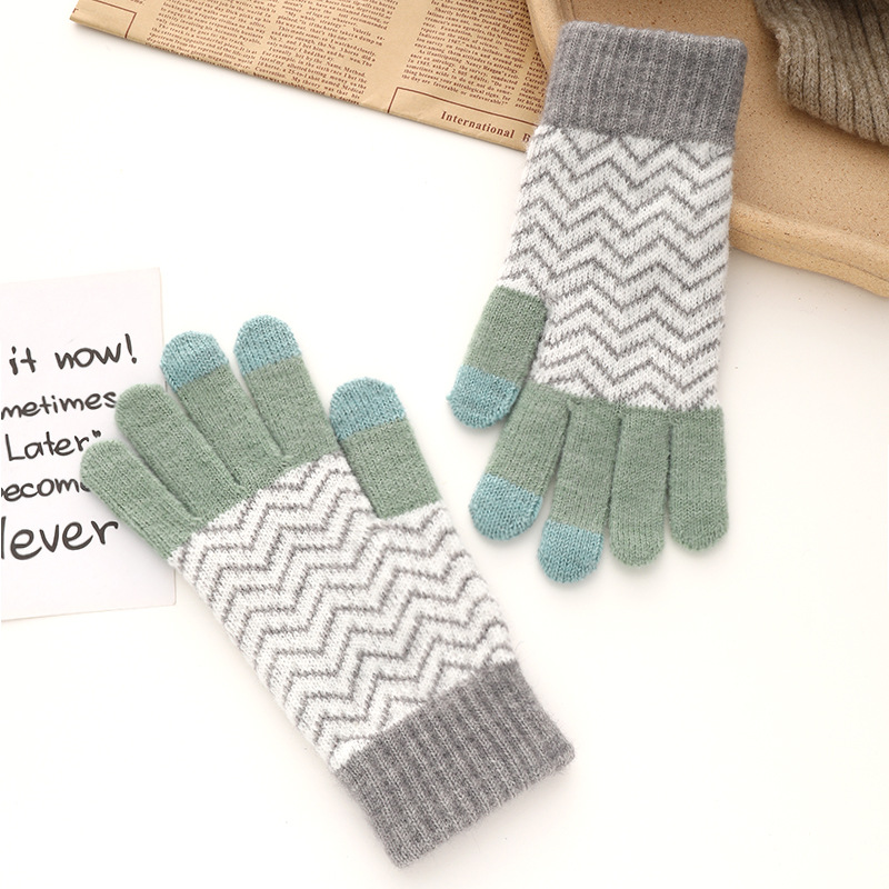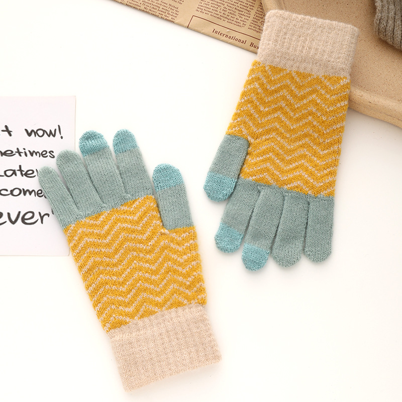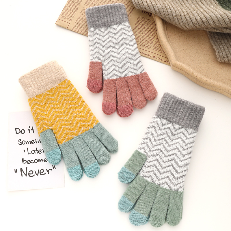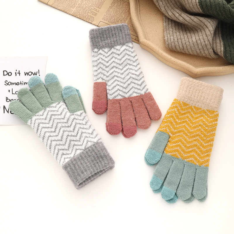따뜻한 장갑 여성의 가을과 겨울 야외 기모 방한 자카드 물결 모양의 울 터치 스크린 다섯 손가락 장갑스토어 가기