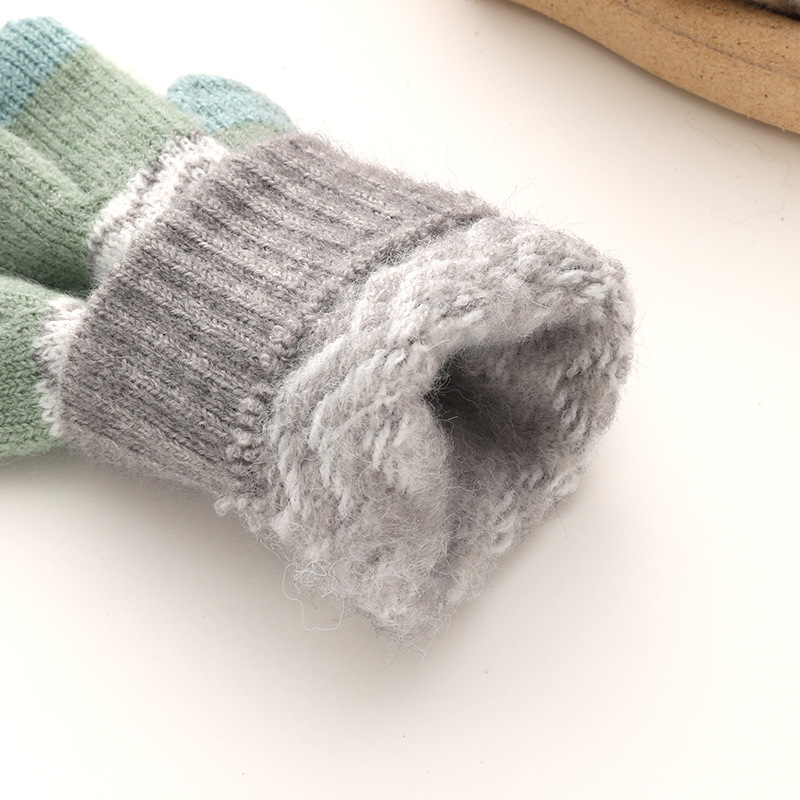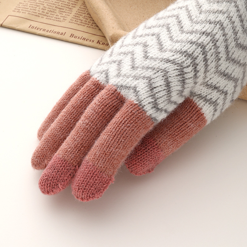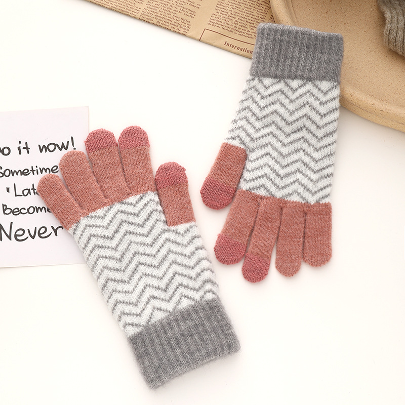 따뜻한 장갑 여성의 가을과 겨울 야외 기모 방한 자카드 물결 모양의 울 터치 스크린 다섯 손가락 장갑