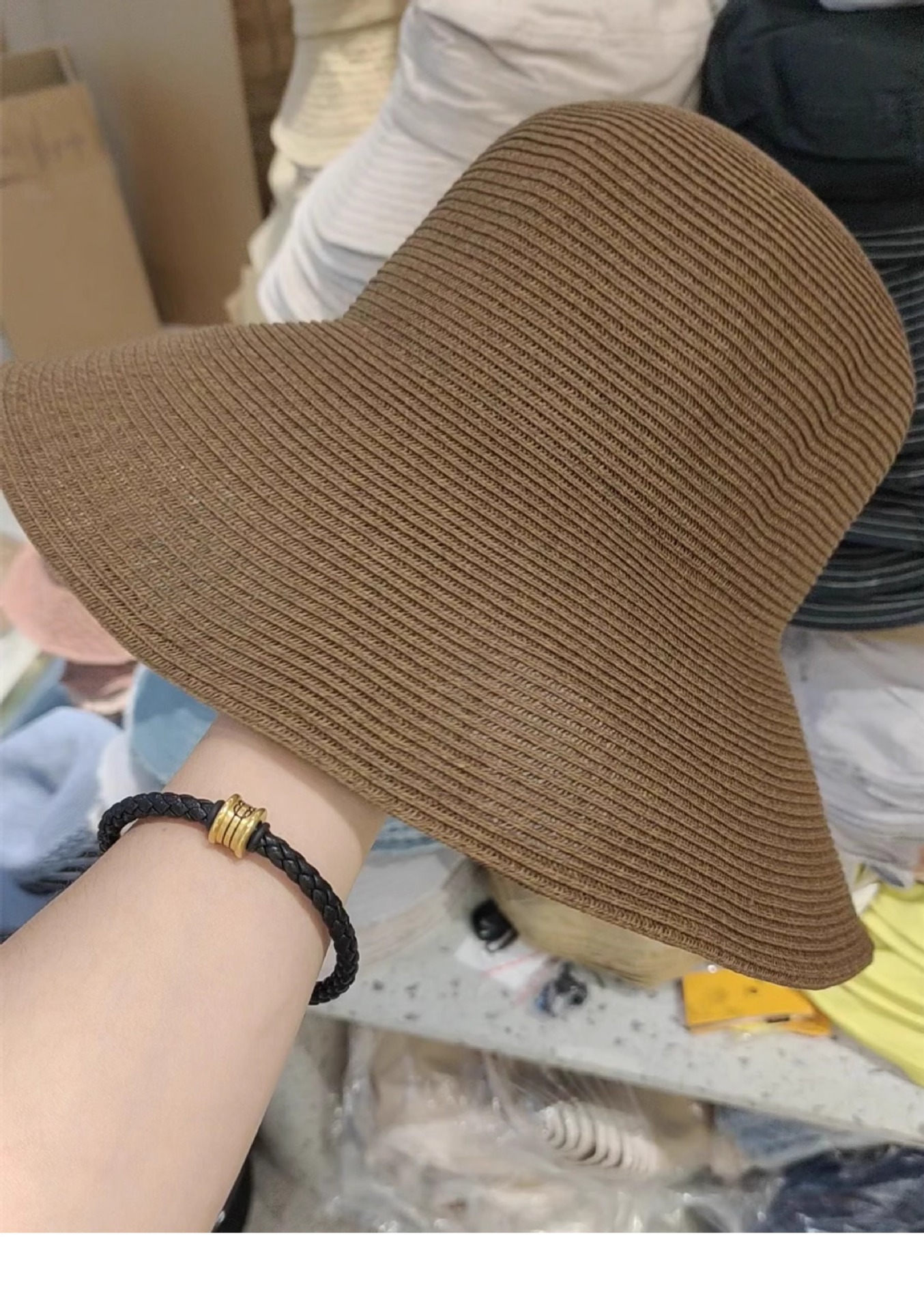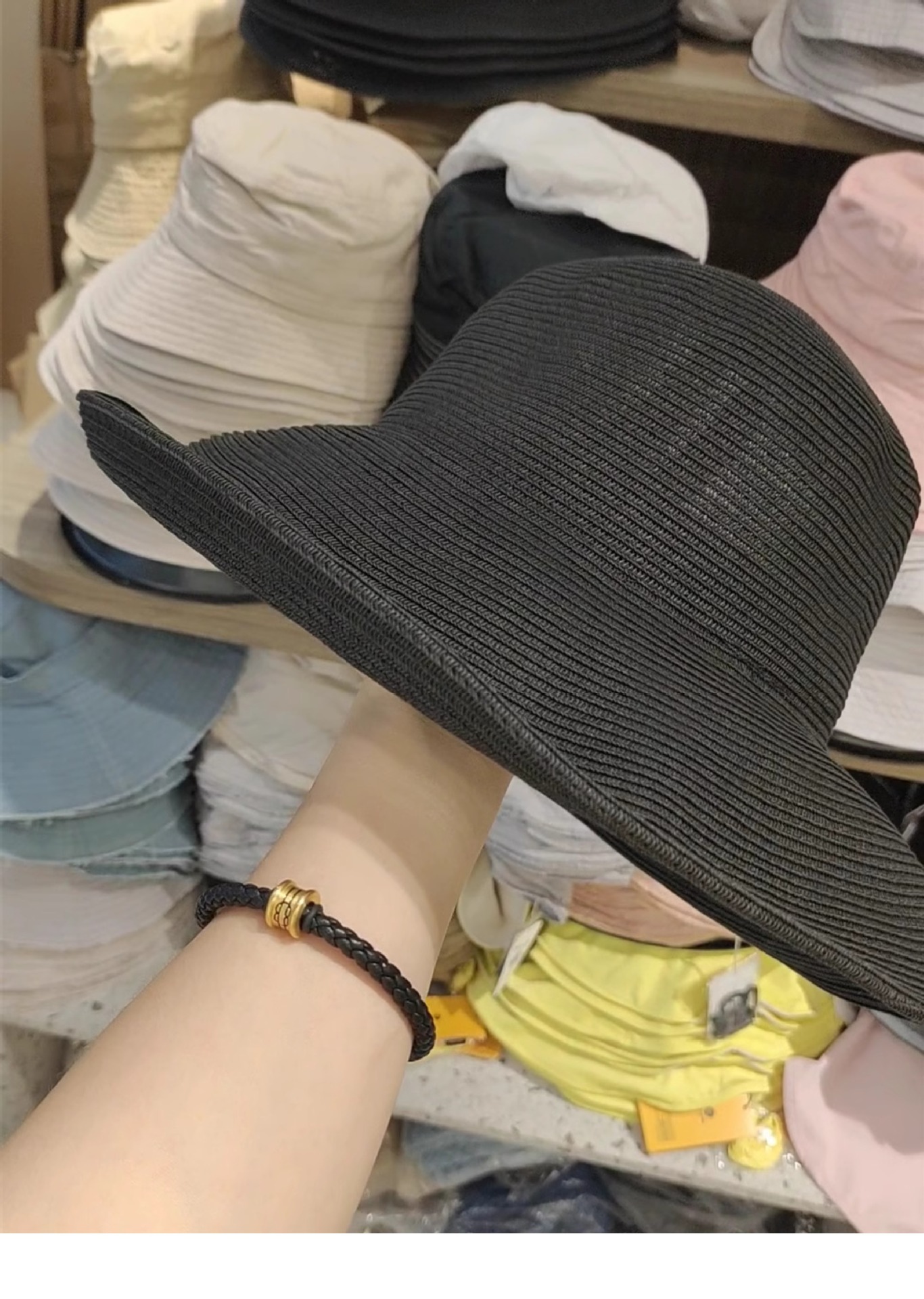 日系简约可折叠出游度假防晒沙滩渔夫帽草帽女夏天潮遮脸遮阳帽子