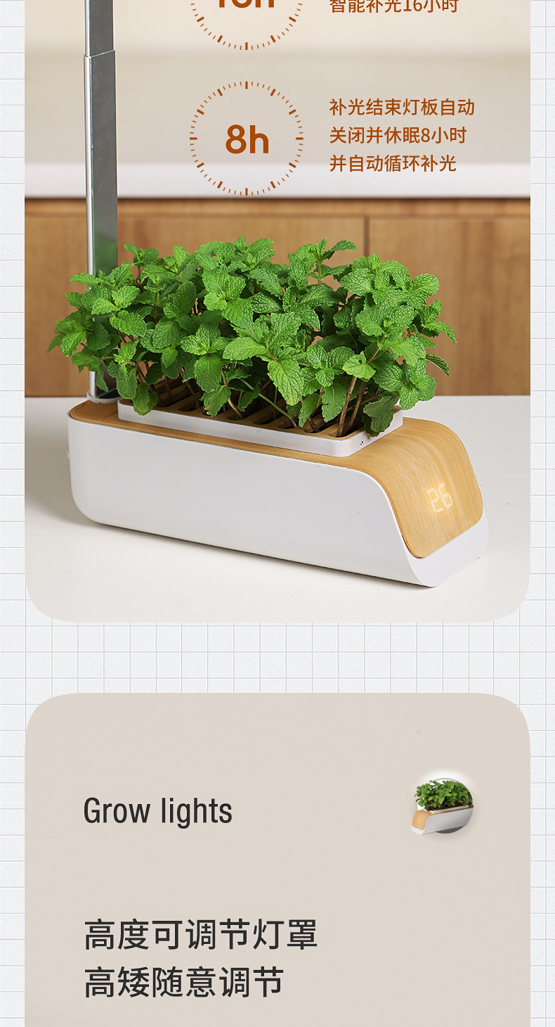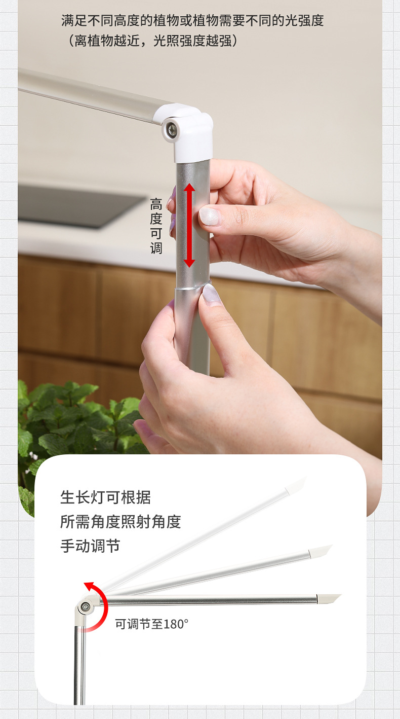 2.蓝色和红色的光是生长光。蓝光可以促进茎和叶的生长,红光有利于花卉和果实的生长。(16小时工作+8小时睡眠)