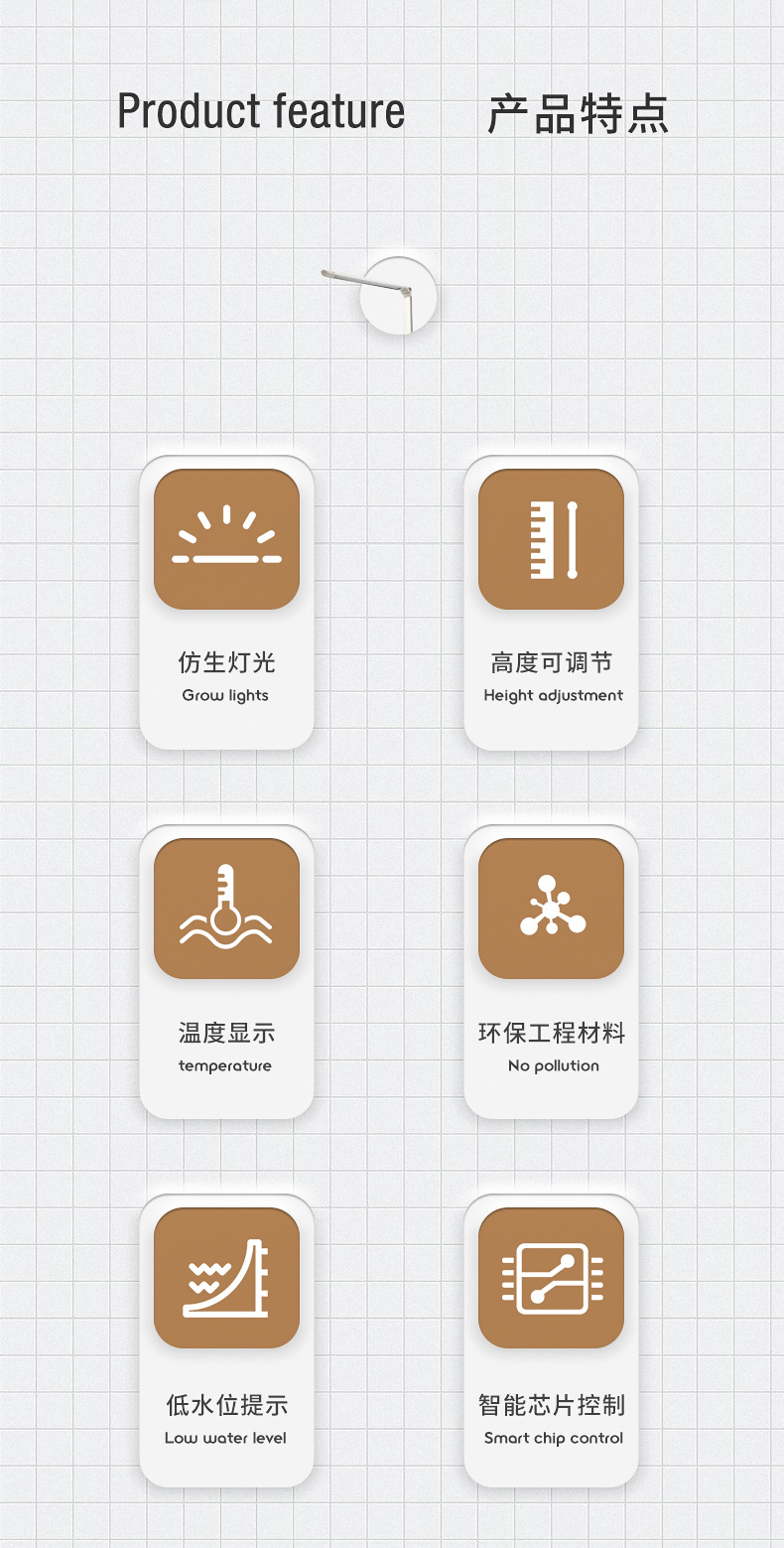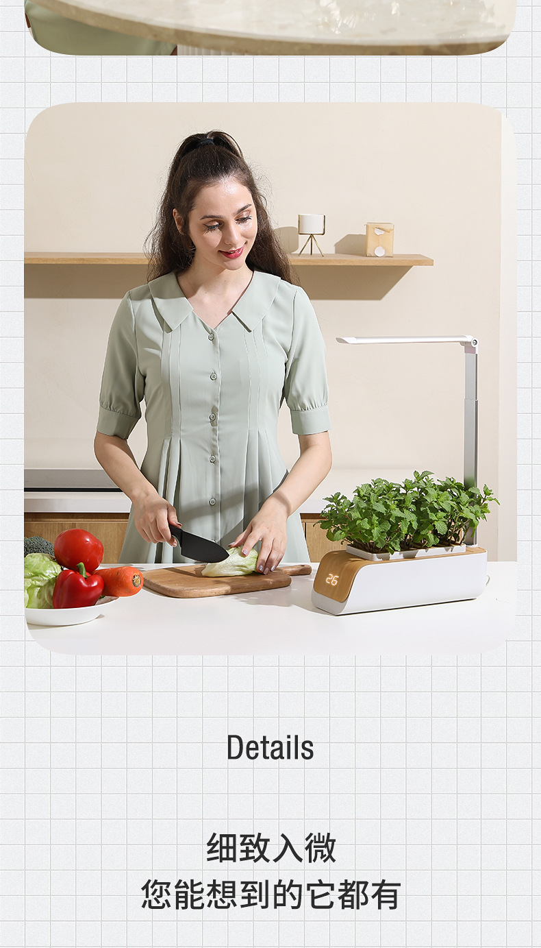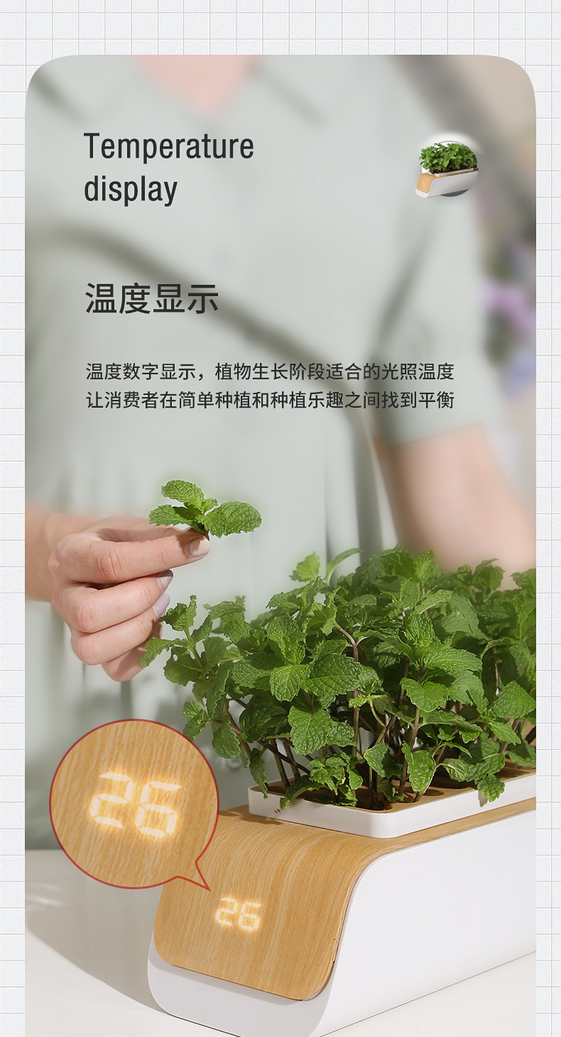 产品内配/Within the product distribution:花盆组装壳体*1、灯杆*1、Typ-C充电线*1、适配器*1、说明书*1、合格证*1、蛭石*1