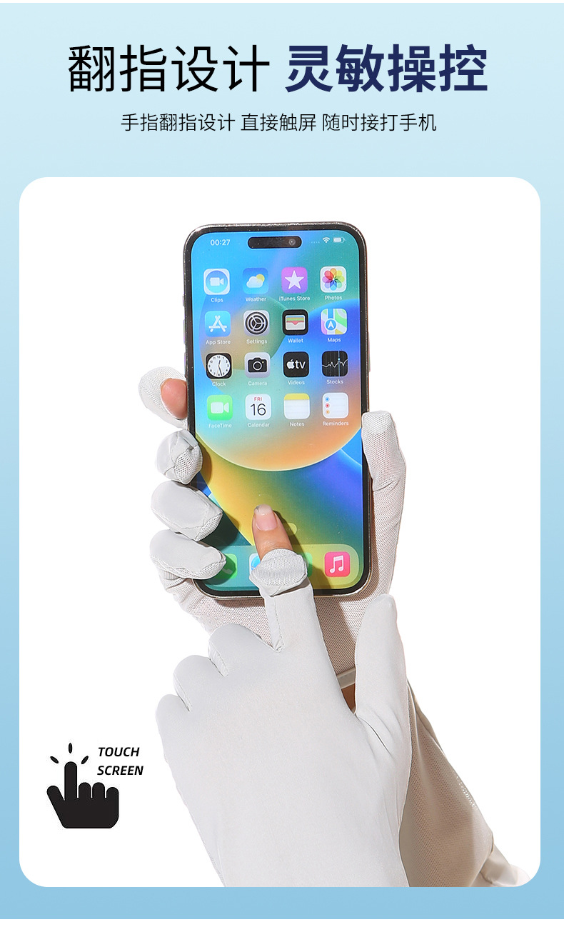 선 스크린 소매 장갑 통합 터치 스크린 여성의 안티-자외선 여름 얇은 승마 운전 긴 얼음 소매스토어 가기