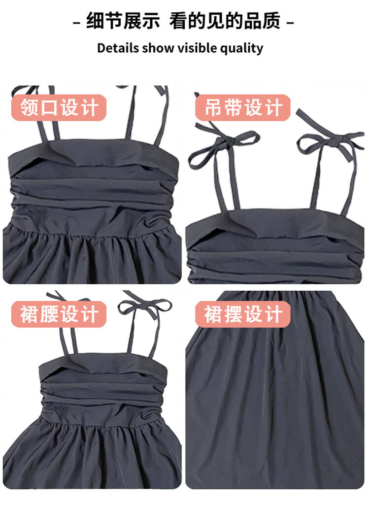 소녀들의 스트랩리스 원피스 여름 소녀들의 세련 된 슬링 스커트 2024 큰 아이들을위한 새로운 도착 한국식 롱 비치 스커트스토어 가기