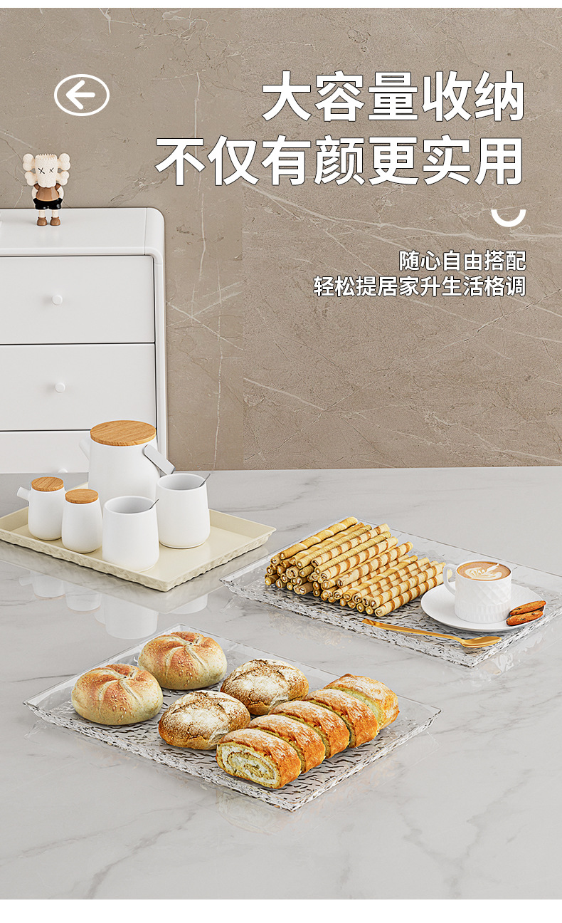 빙하 패턴 다기능 디너 플레이트 두꺼운 과일 플레이트 가정용 높은 수준의 노르딕 스타일 스퀘어 레스토랑 스토리지 트레이