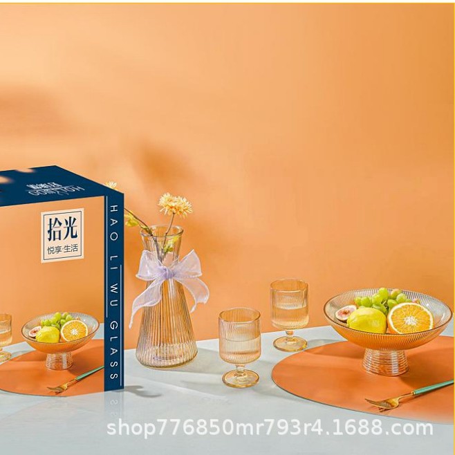 좋은 유리 소재 빛 따기 두 조각 세트 가정용 거실 스낵 과일 플레이트 커피 테이블 장식 수직 패턴 유리 꽃병 높이스토어 가기