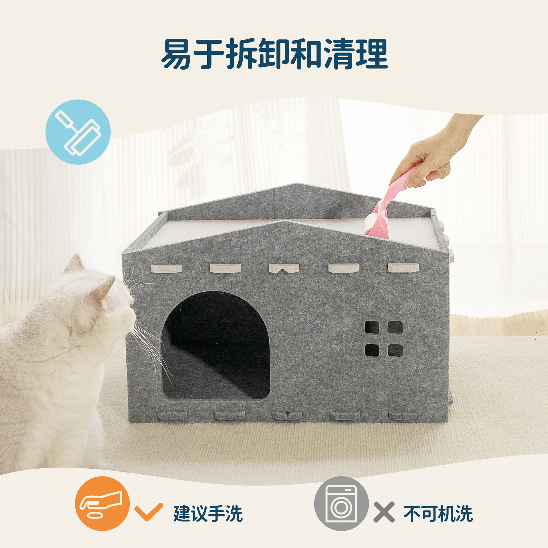 펠트 이중 목적 고양이 둥지 고양이 긁는 보드 통합 긁힘 방지 및 내마모성 고양이 빌라 반 밀폐형 접이식 고양이 집스토어 가기