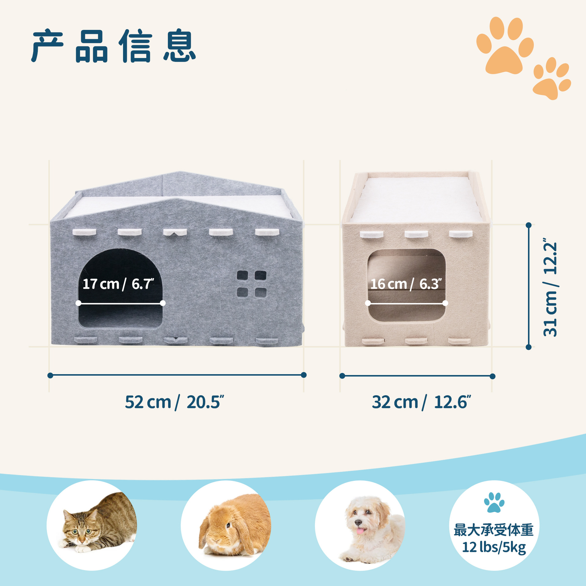 펠트 이중 목적 고양이 둥지 고양이 긁는 보드 통합 긁힘 방지 및 내마모성 고양이 빌라 반 밀폐형 접이식 고양이 집