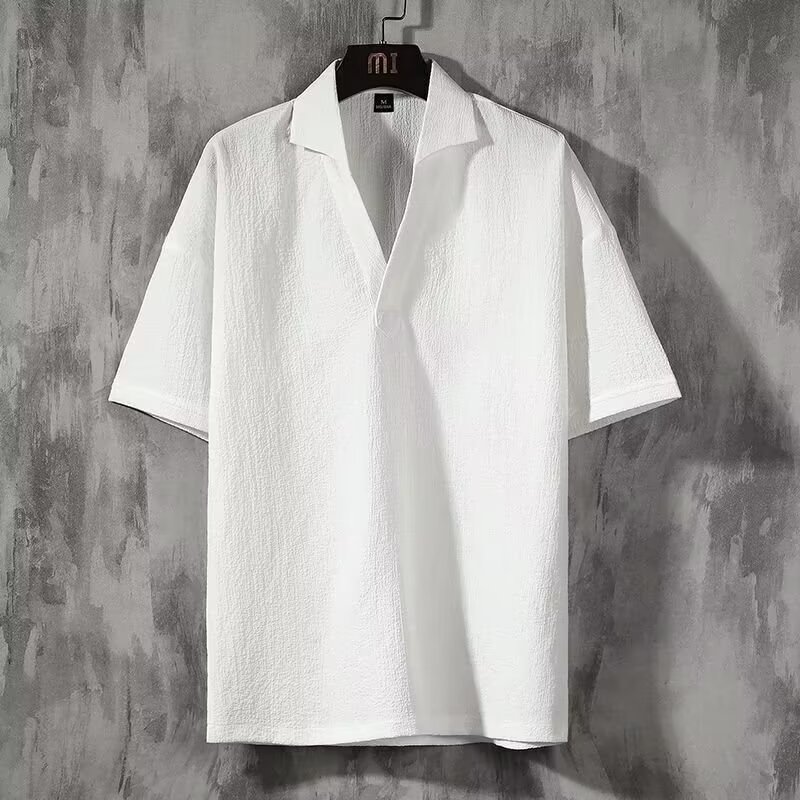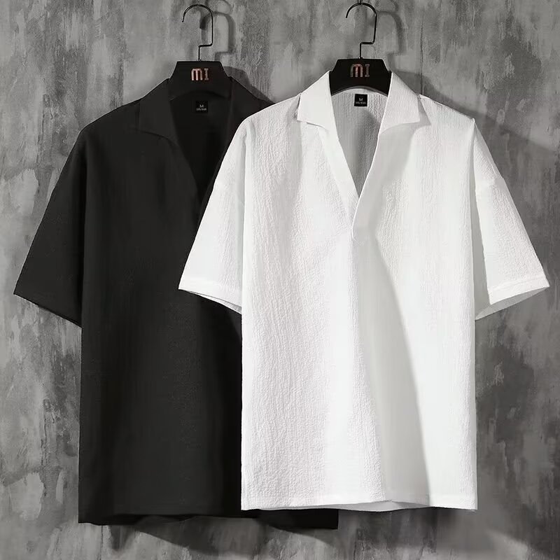 여름 빛 성숙한 쿠바 칼라 반팔 티셔츠 남자 트렌디 브랜드 하이 엔드 틈새 디자인 폴로 셔츠 반팔 탑 올 매치