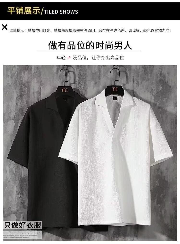 여름 빛 성숙한 쿠바 칼라 반팔 티셔츠 남자 트렌디 브랜드 하이 엔드 틈새 디자인 폴로 셔츠 반팔 탑 올 매치스토어 가기