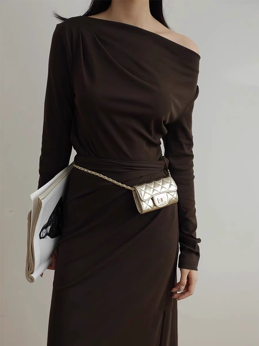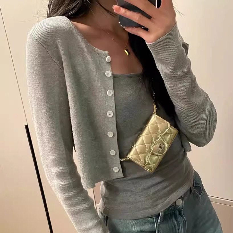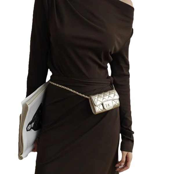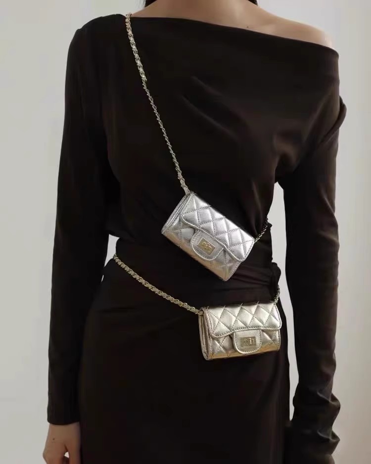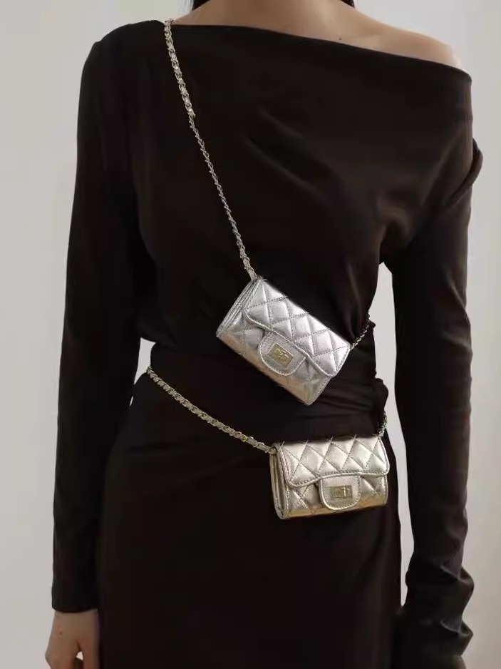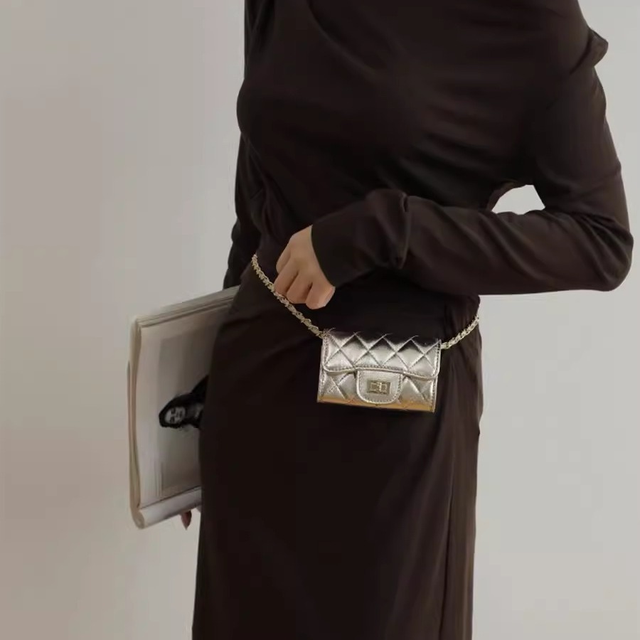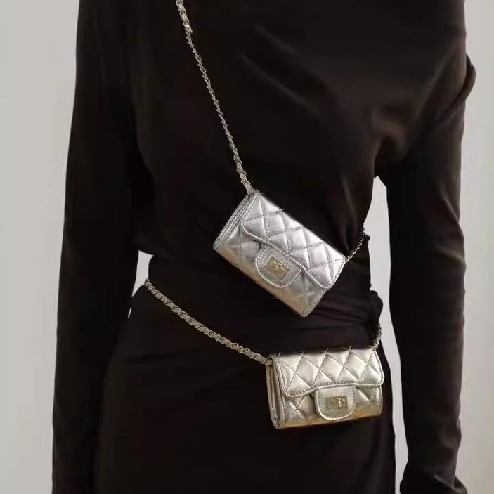 실버 작은 폐기물 가방 미니 카드 가방 동전 지갑 미니 가방 새로운 허리 가방 여성 체인 크로스 바디 백