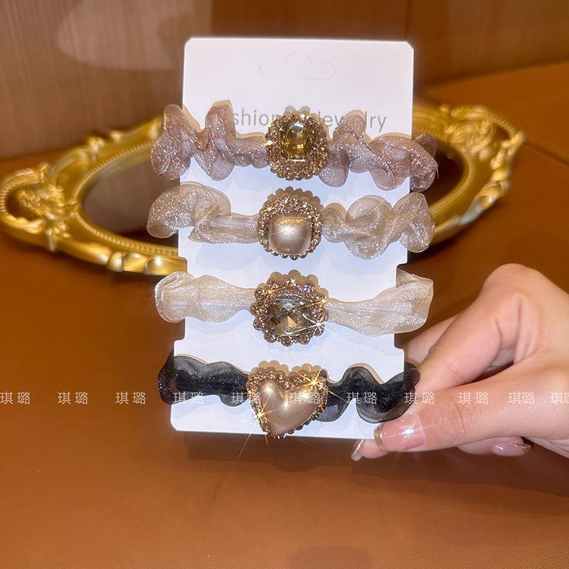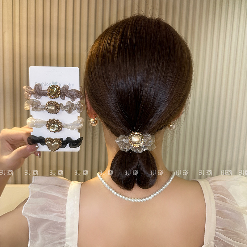 봄과 여름 새로운 메쉬 헤어 링 하이 엔드 헤드 라인 로프 여성의 우아한 올 매치 헤어 로프 넷 레드 포니 테일 고무 텐든 헤어 액세서리스토어 가기