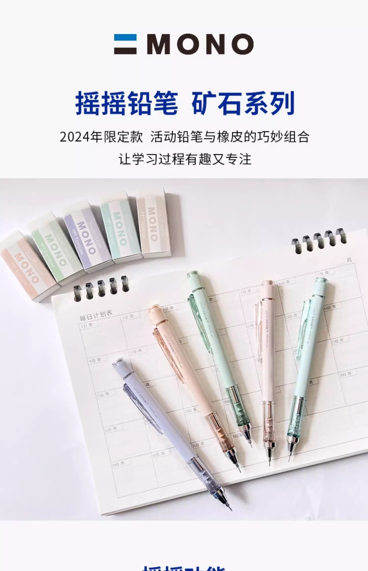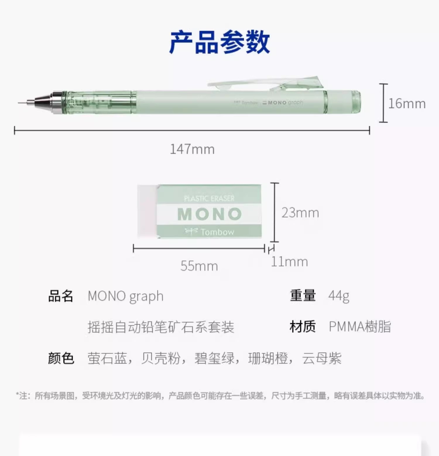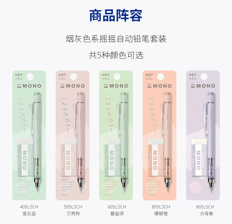 잠자리 일본 광석 시리즈 제한 색상 0.5 문구 학생 새로운 흔들 기계 연필 지우개 세트스토어 가기