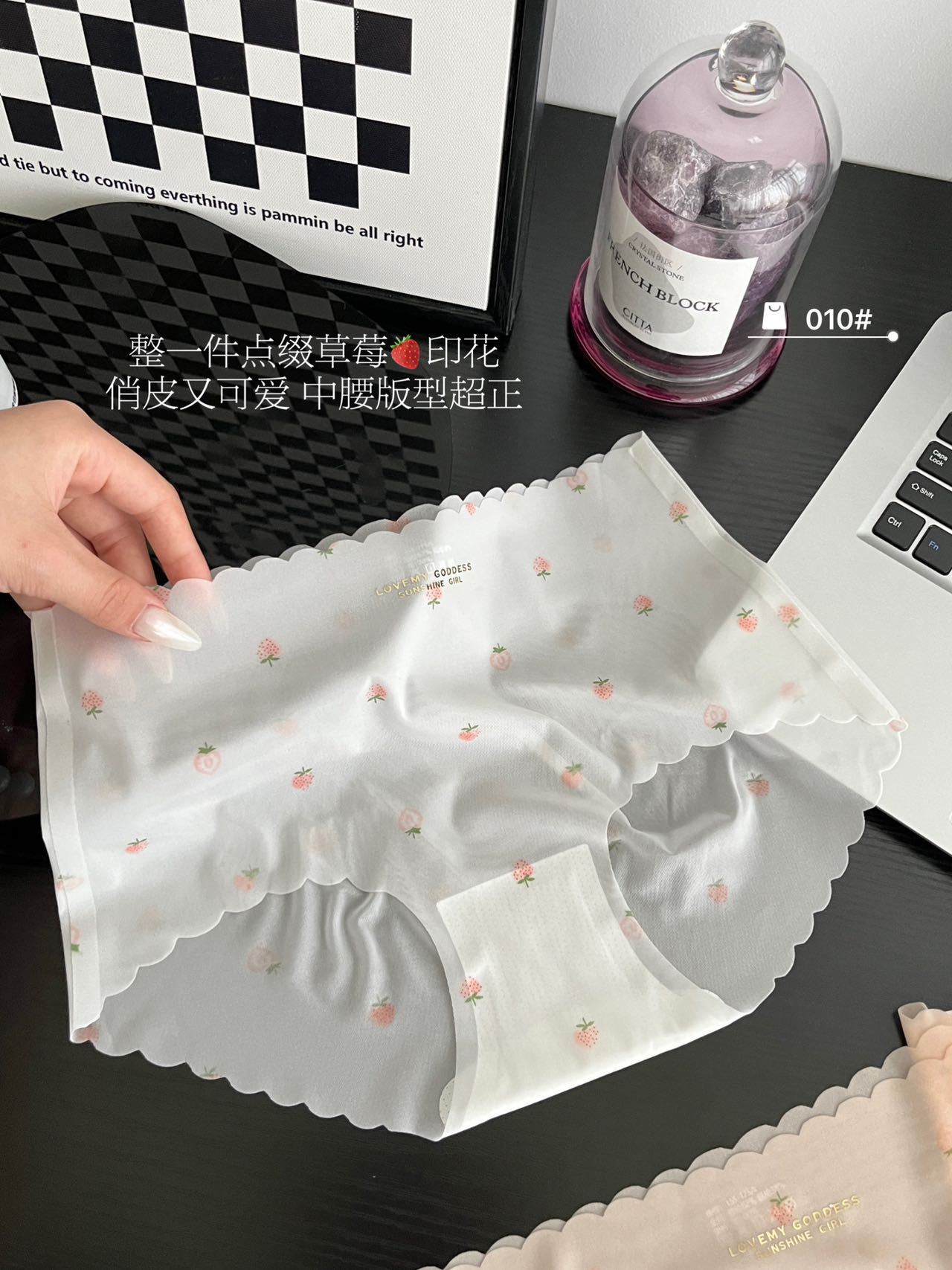 얇은 얼음 실크 추적없는 속옷 여성용 딸기 소녀의 중간 허리 섹시한 3D 복숭아 엉덩이 벌거 벗은 마스크 바지 브리프스토어 가기