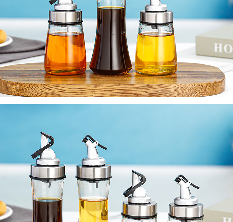 유리 오일 포트 자동 개방 및 폐쇄 누출 방지 주방 가정용 오일 병 오일 탱크 소스 병 간장 식초 맛