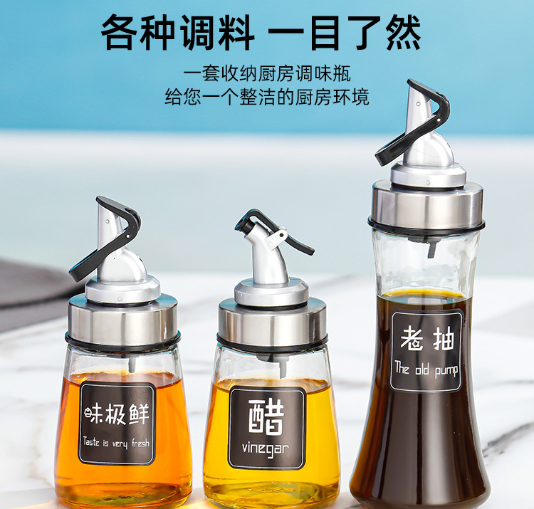 유리 오일 포트 자동 개방 및 폐쇄 누출 방지 주방 가정용 오일 병 오일 탱크 소스 병 간장 식초 맛스토어 가기