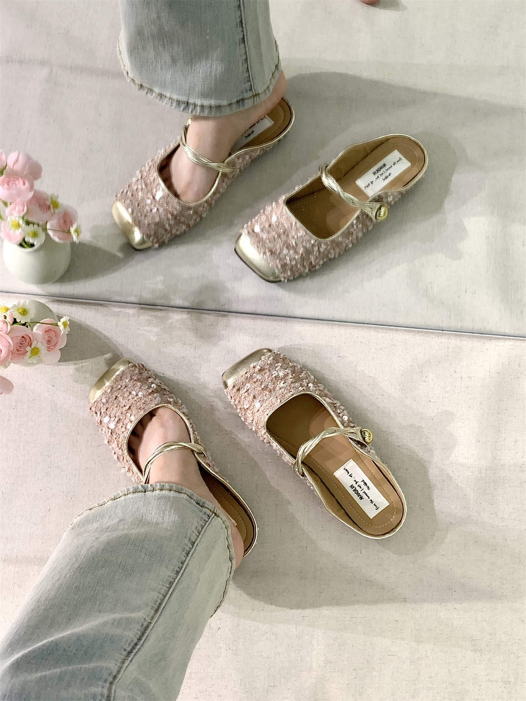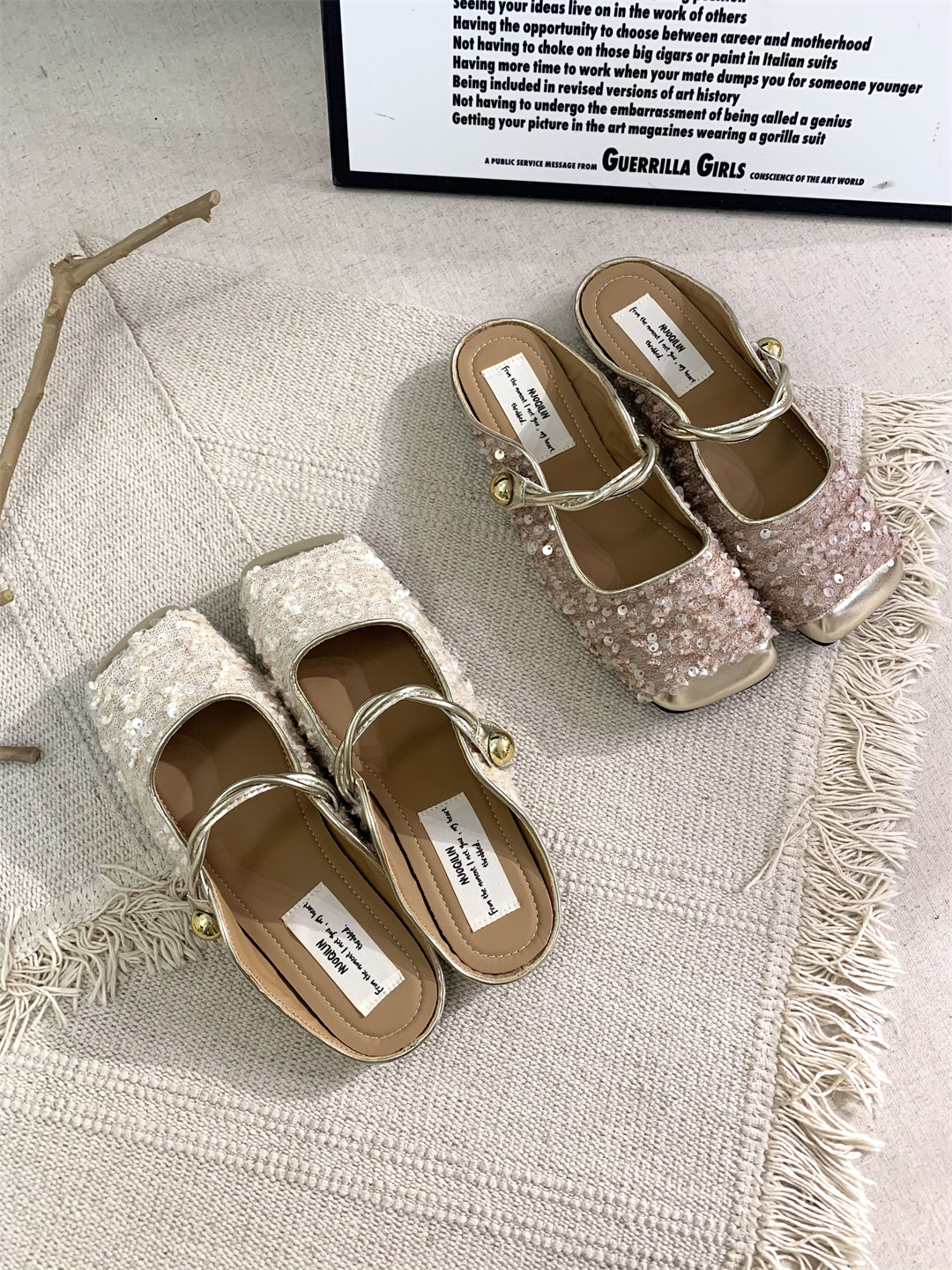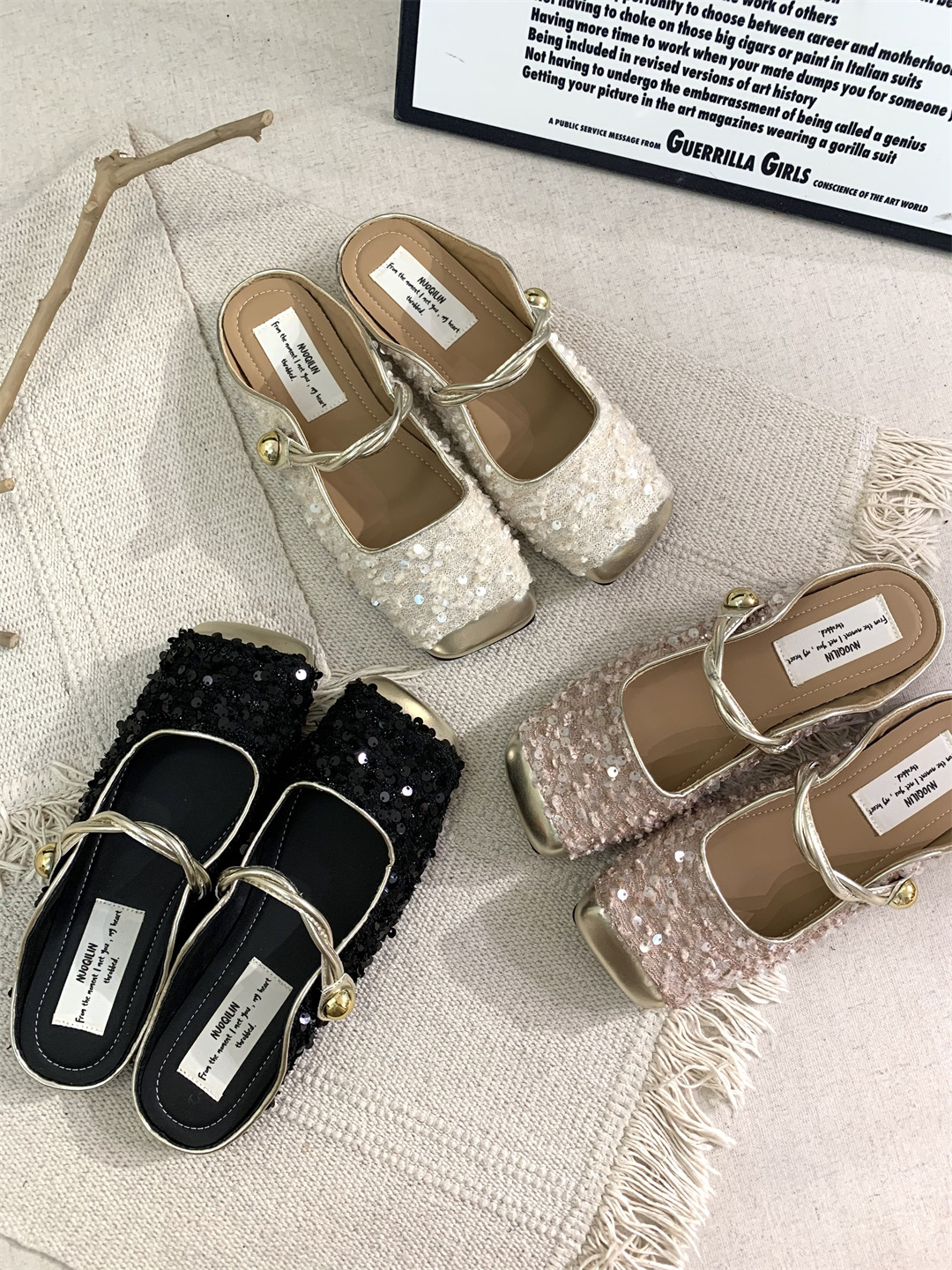 프랑스 스퀸 실버 바오터우 하프 슬리퍼 여성 봄과 여름 2024 스타일 한국 스타일 우아한 메리 제인 신발 여성 신발스토어 가기