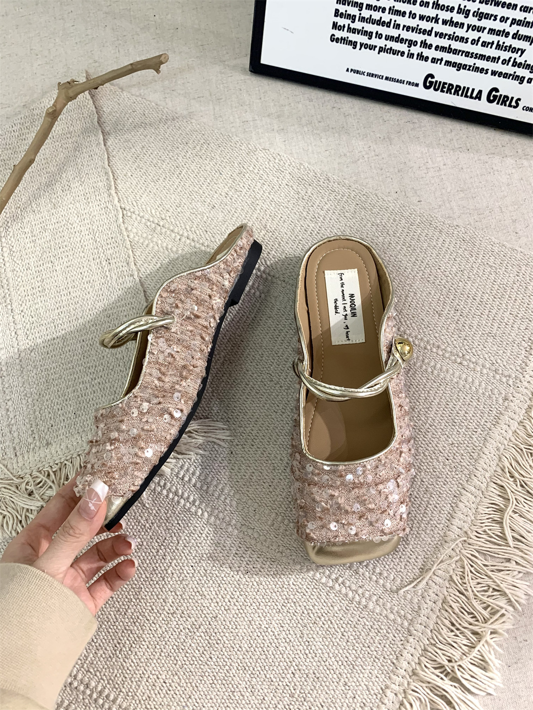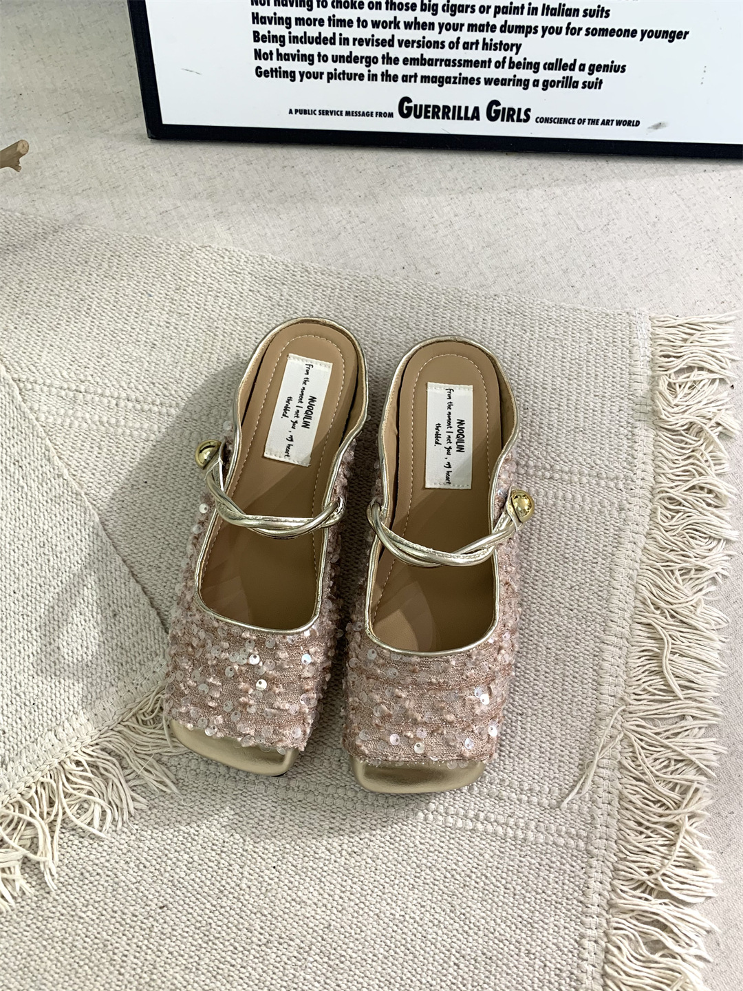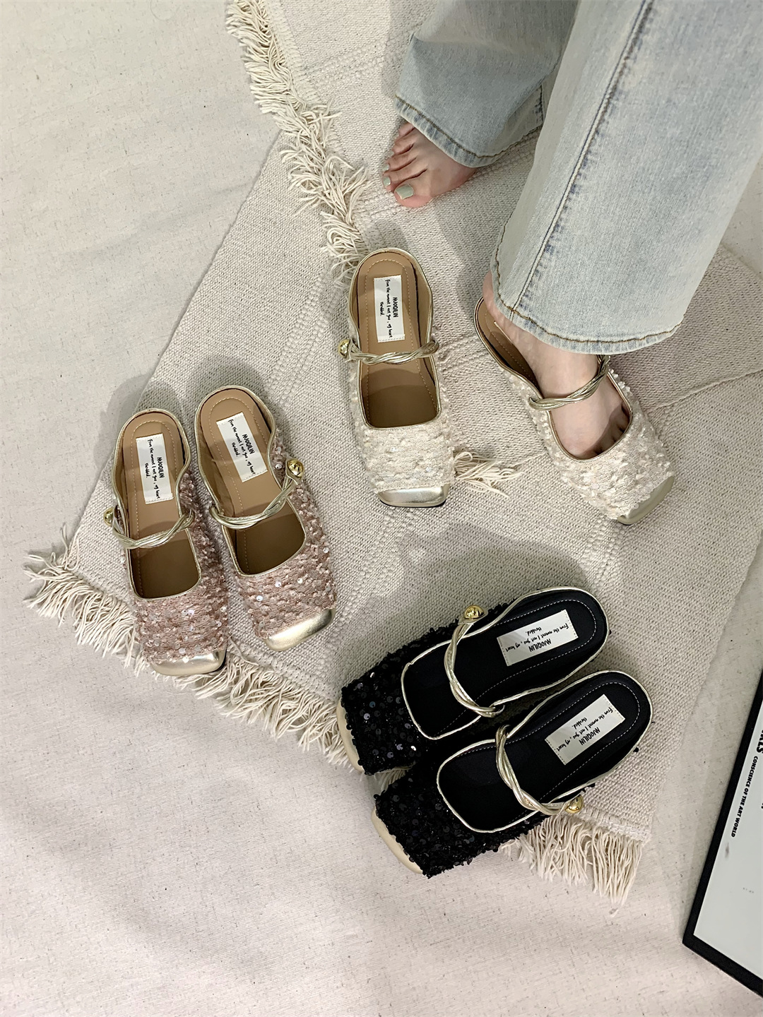 프랑스 스퀸 실버 바오터우 하프 슬리퍼 여성 봄과 여름 2024 스타일 한국 스타일 우아한 메리 제인 신발 여성 신발스토어 가기