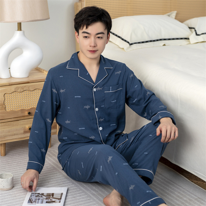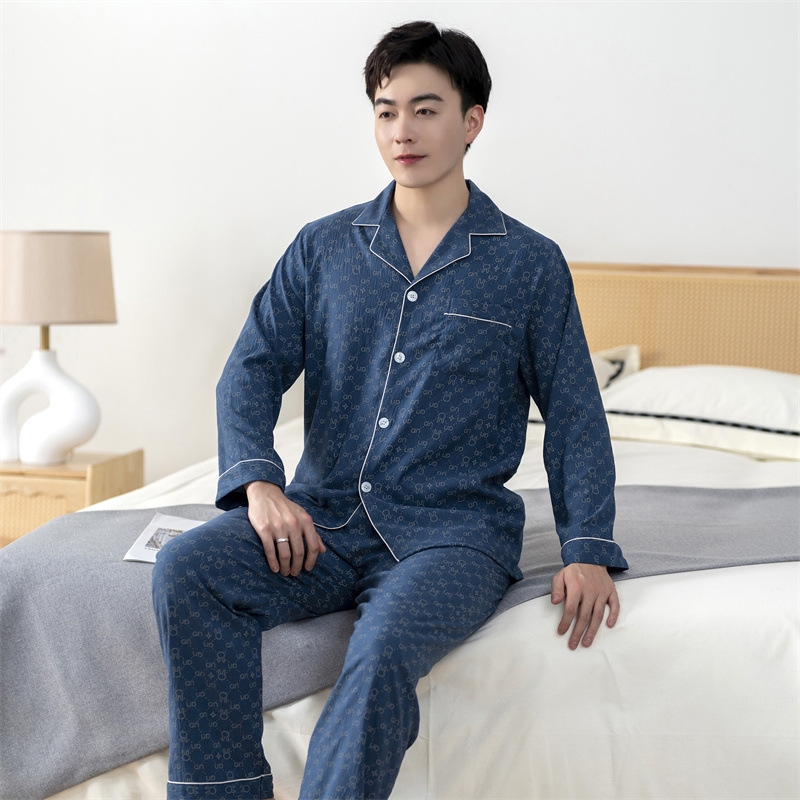 YY 새로운 남성 플러스 사이즈 잠옷 봄과 가을 구름 면 아빠와 남편 홈 옷을위한 긴 소매 얇은 세트스토어 가기
