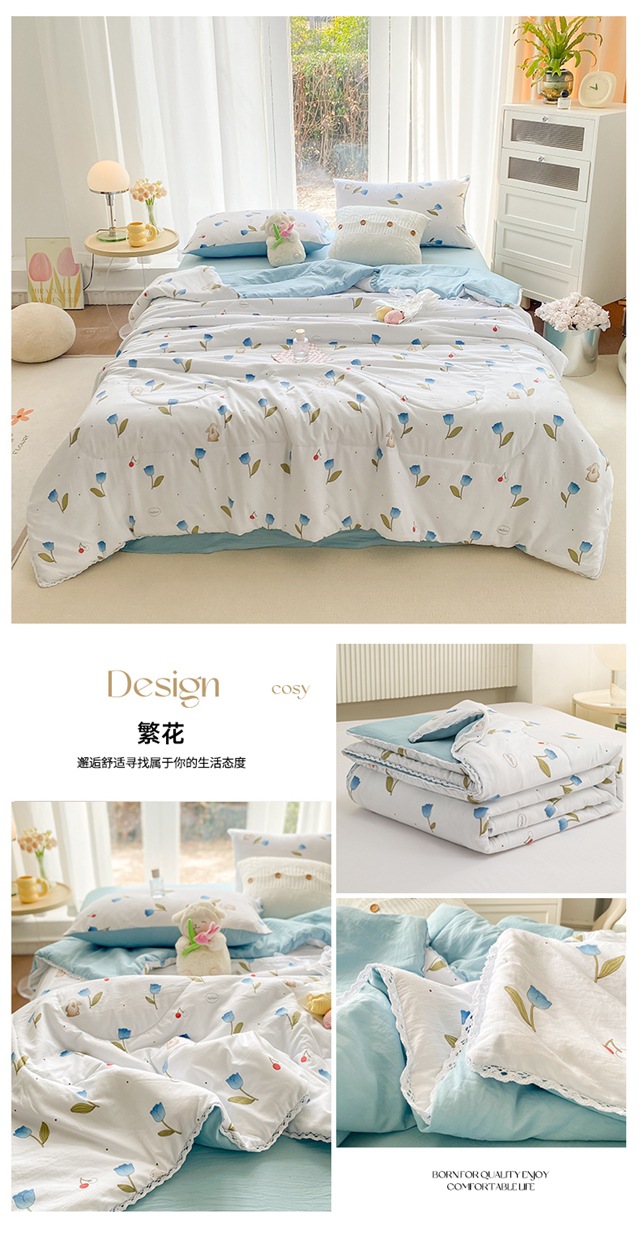 기계 빨 수 있는 면화 여름 이불 4 조각 학생 기숙사 여름 시원한 이불 가정용 기계 세탁기 에어컨 이불 도매 그룹 구매