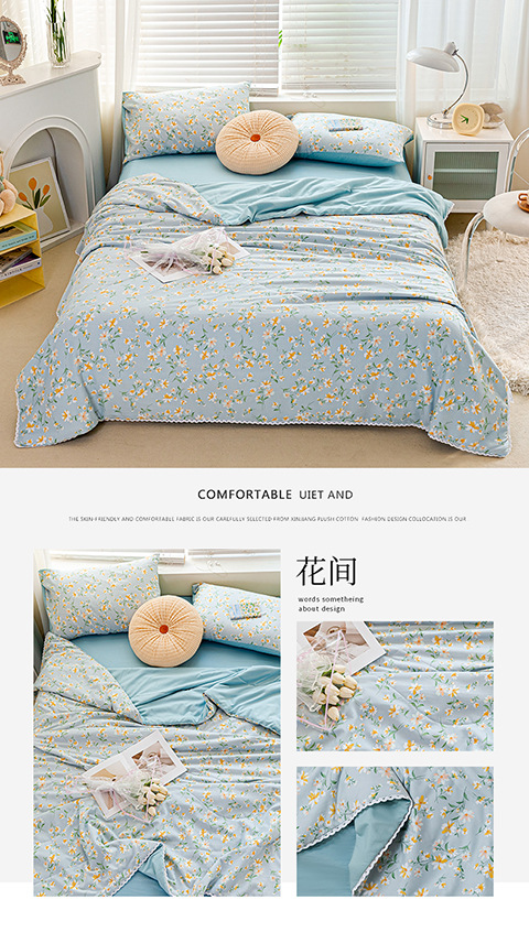 기계 빨 수 있는 면화 여름 이불 4 조각 학생 기숙사 여름 시원한 이불 가정용 기계 세탁기 에어컨 이불 도매 그룹 구매스토어 가기