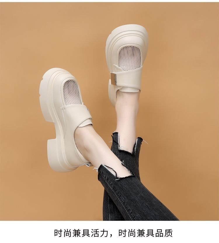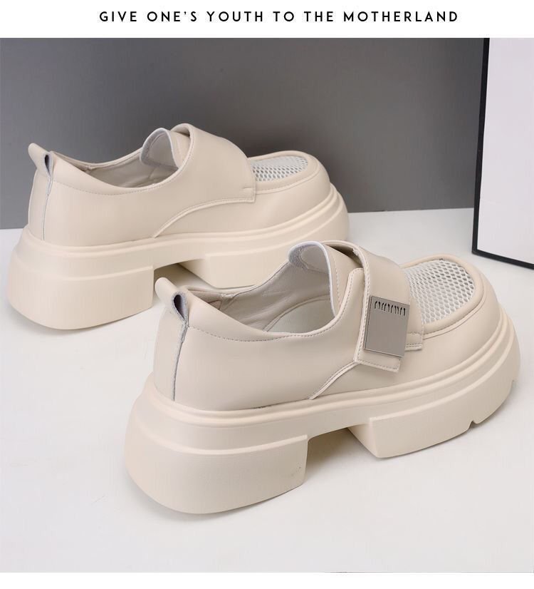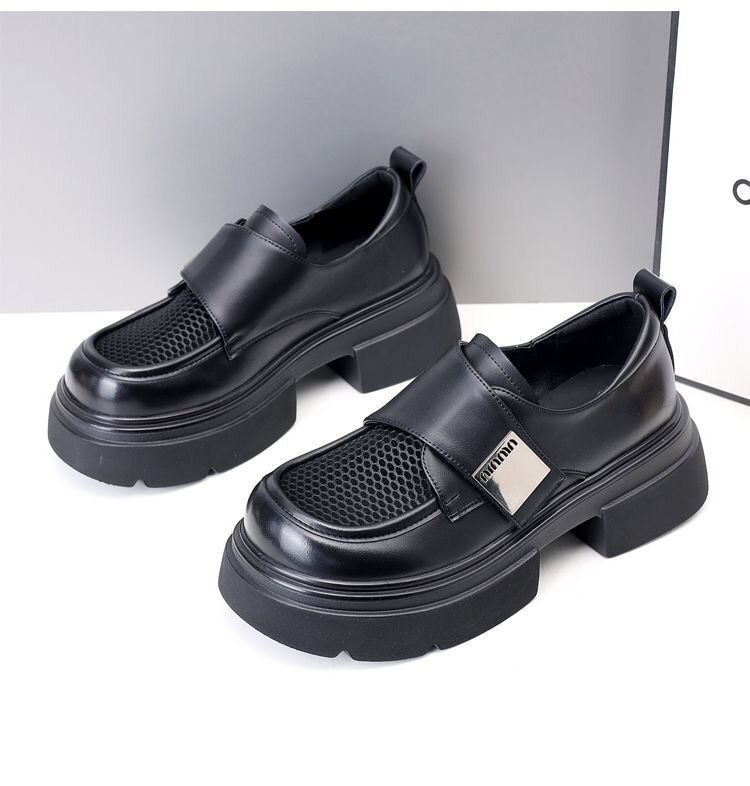 통기성 메쉬 작업 통기성 로퍼 여성의 2024 여름 새로운 벨크로 신발 플랫폼 메쉬 작은 가죽 신발