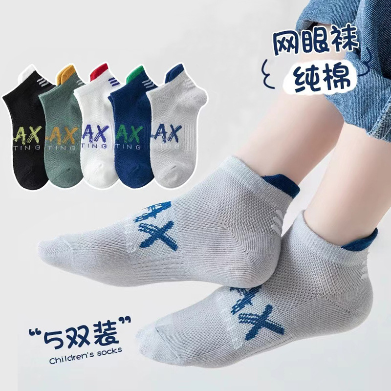 소년 양말 여름 얇은 면 양말 메쉬 통기성 소년 짧은 양말 어린이 봄과 여름 스포츠 면 양말