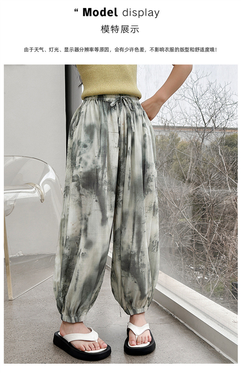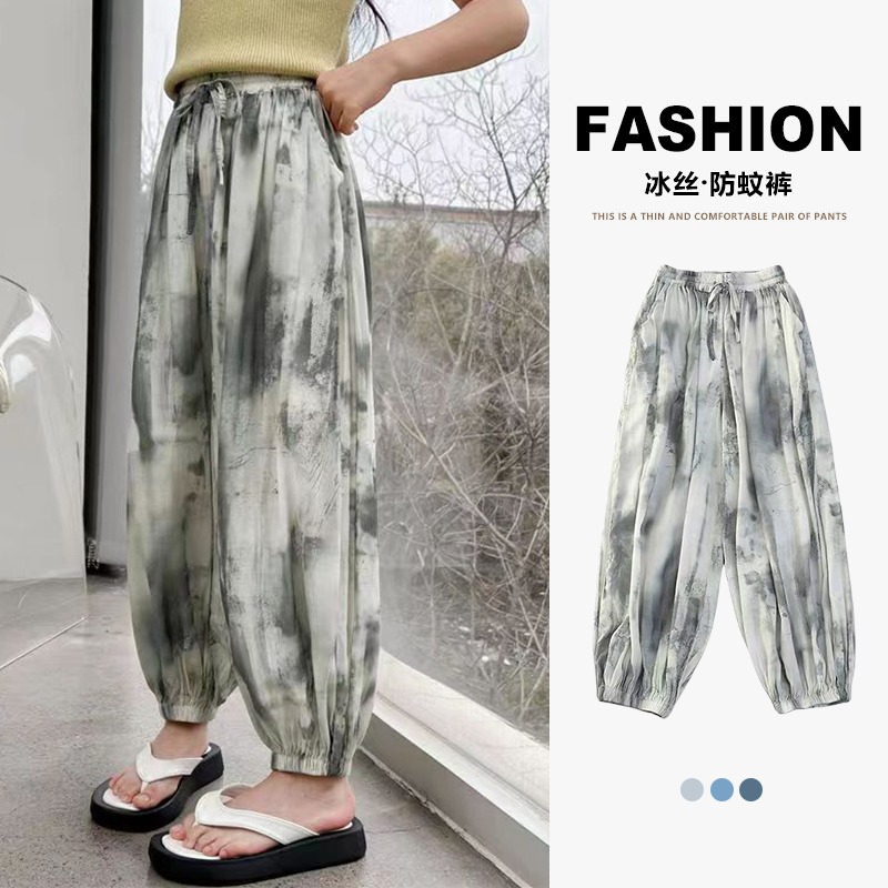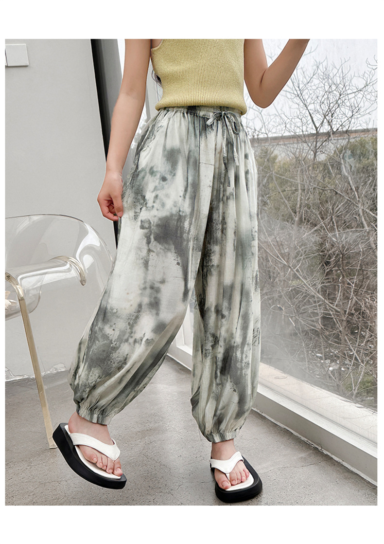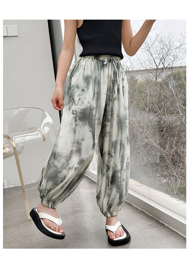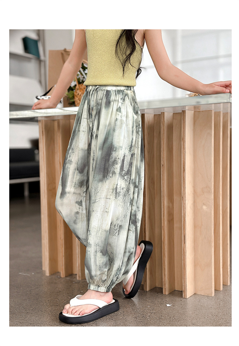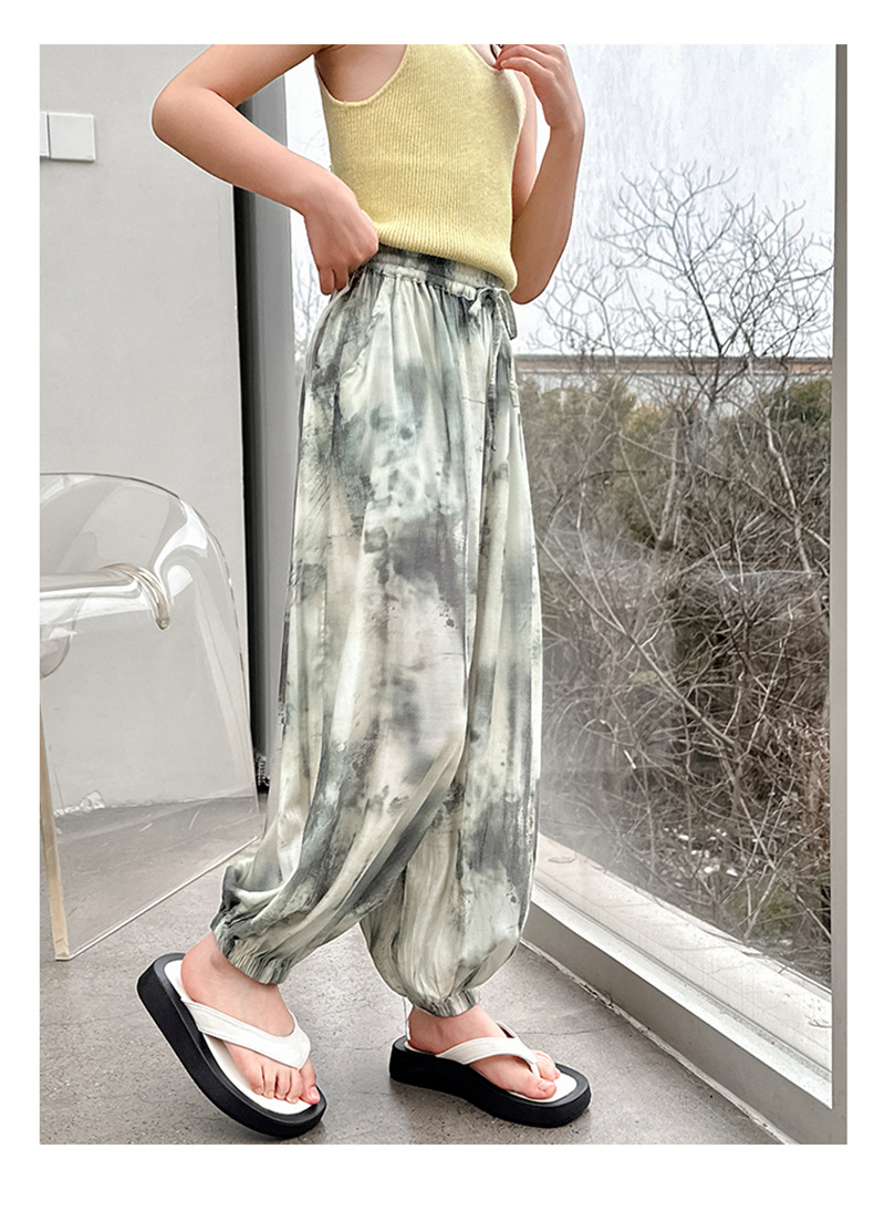 소녀 여름 얇은 느슨한 캐주얼 블루머 2024 큰 어린이 여름 넥타이-염료 아이스 실크 모기 방지 바지스토어 가기