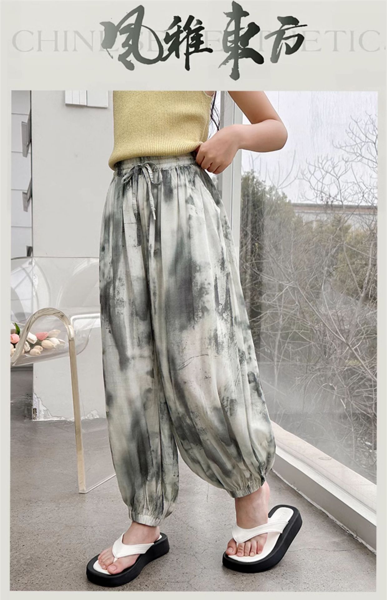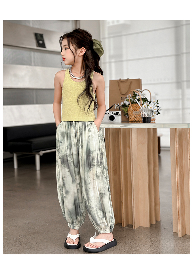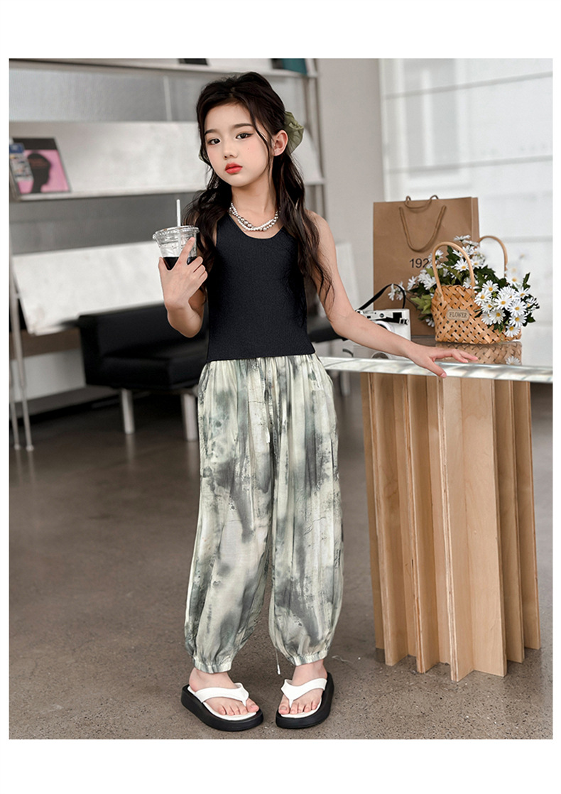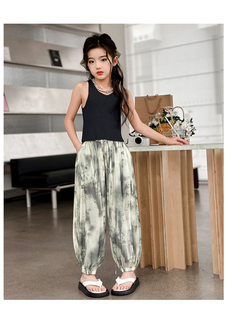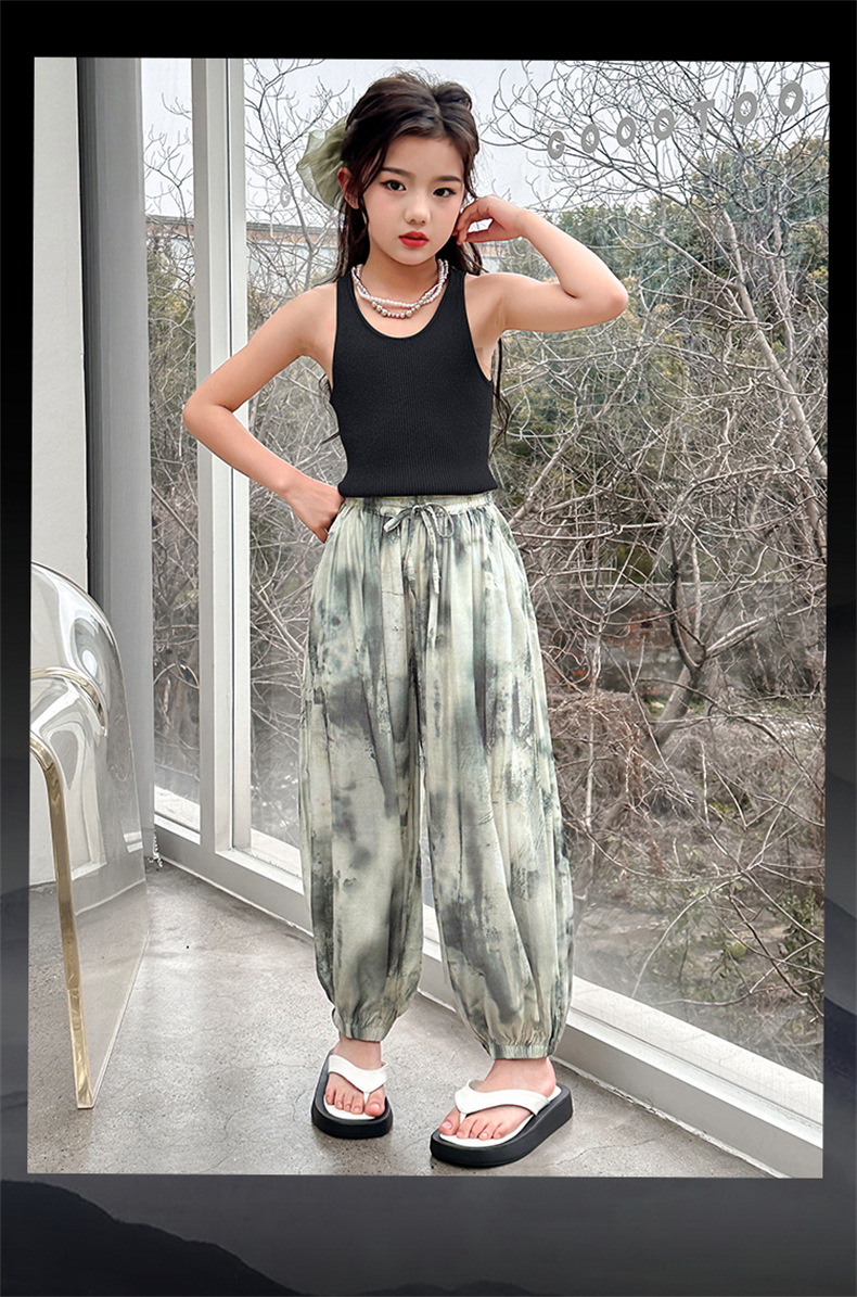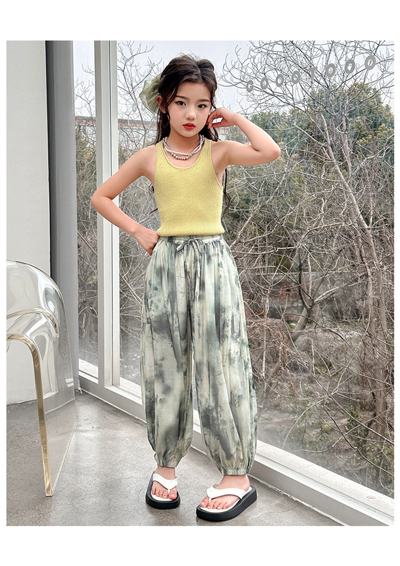 소녀 여름 얇은 느슨한 캐주얼 블루머 2024 큰 어린이 여름 넥타이-염료 아이스 실크 모기 방지 바지스토어 가기