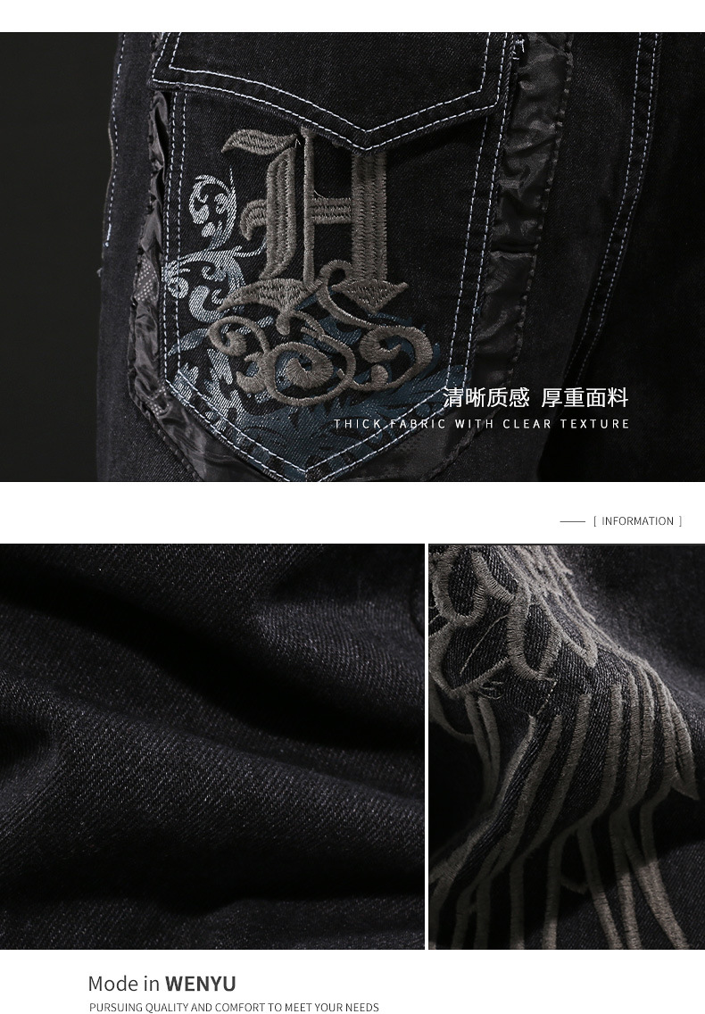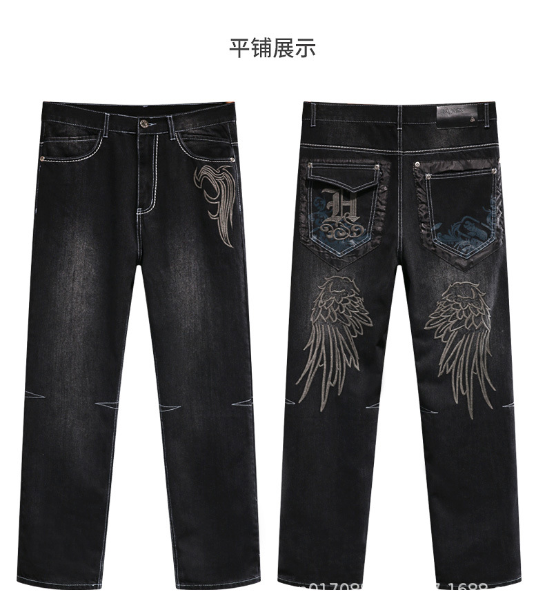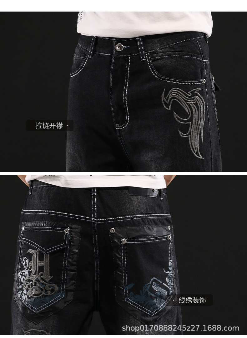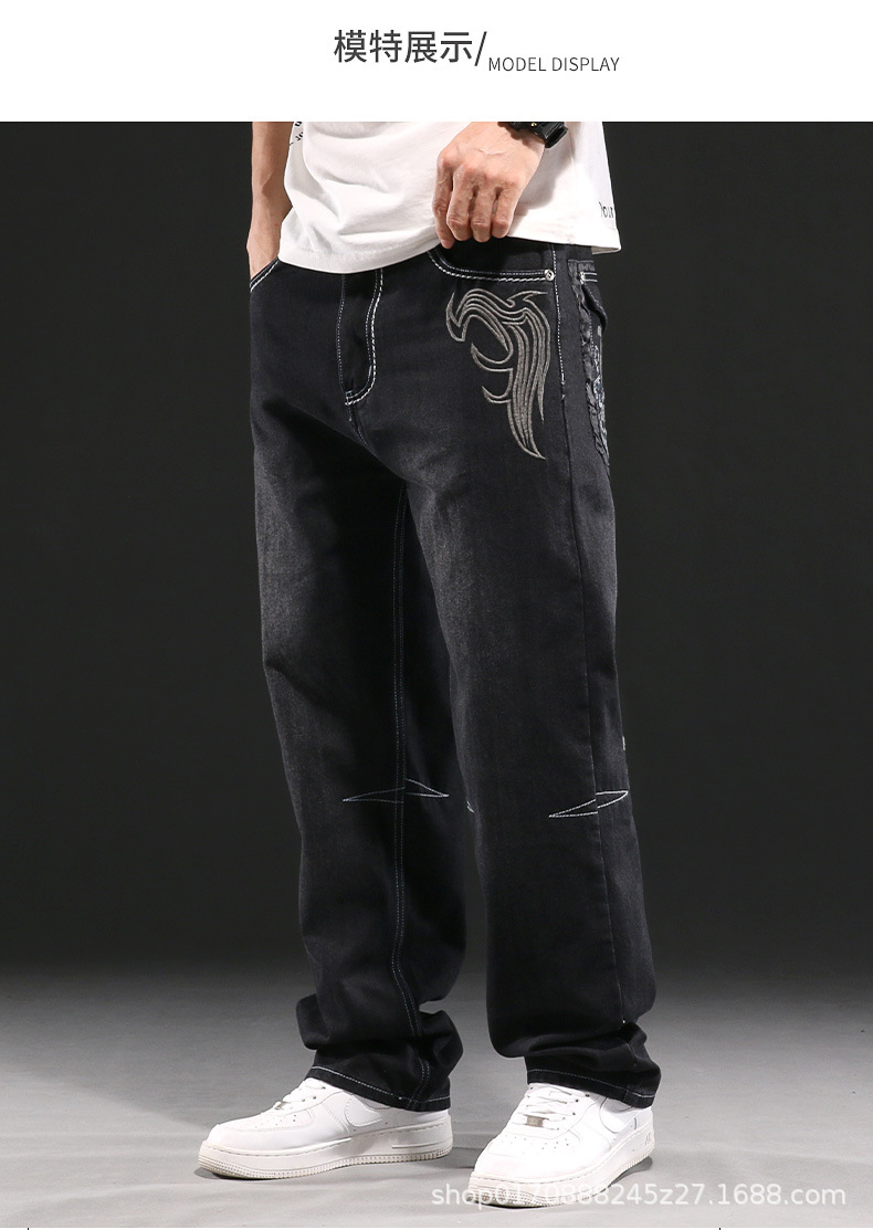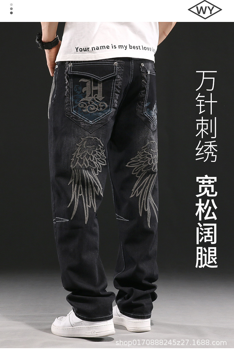 힙합 아메리칸 자수 트렌디 브랜드 청바지 남성용 와이드 레그 루즈 플러스 사이즈 뚱뚱한 남자 트렌디 크로스 미러 드롭 배송