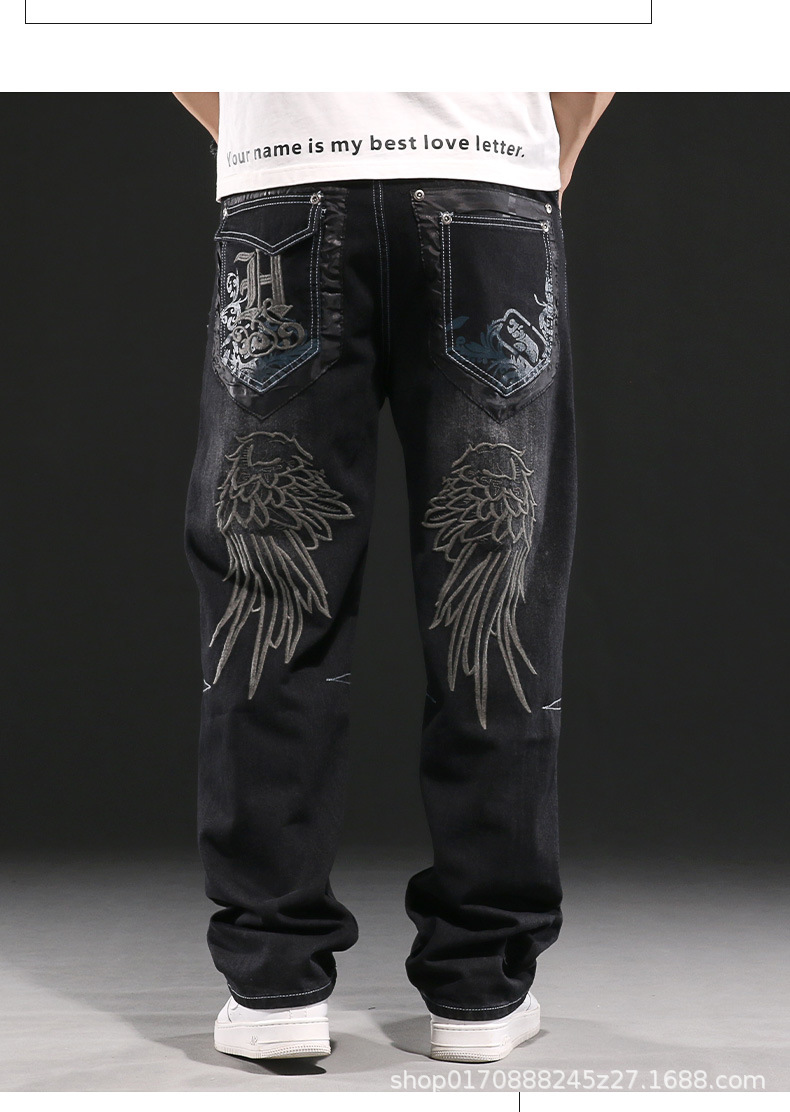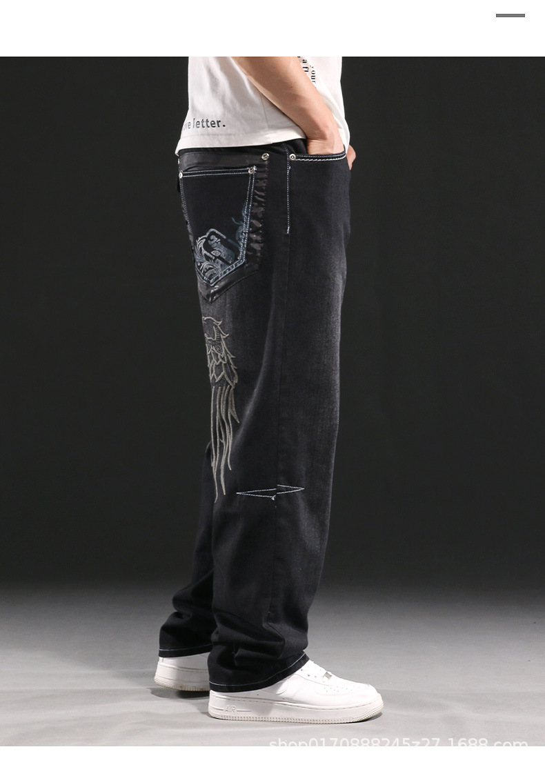 힙합 아메리칸 자수 트렌디 브랜드 청바지 남성용 와이드 레그 루즈 플러스 사이즈 뚱뚱한 남자 트렌디 크로스 미러 드롭 배송스토어 가기