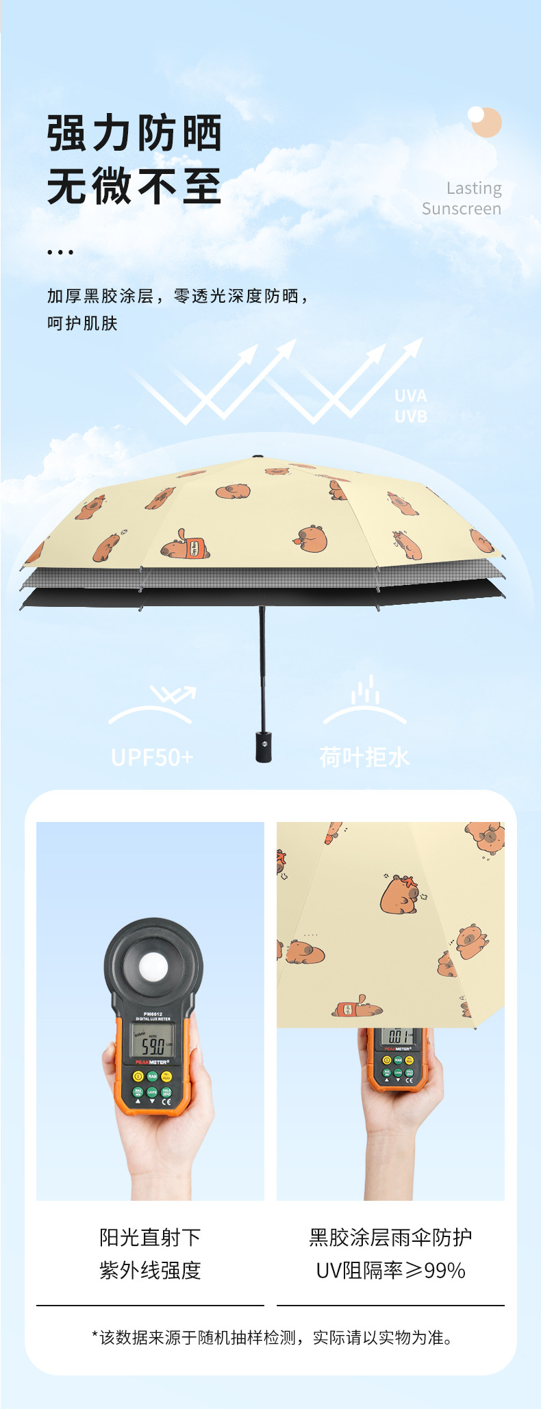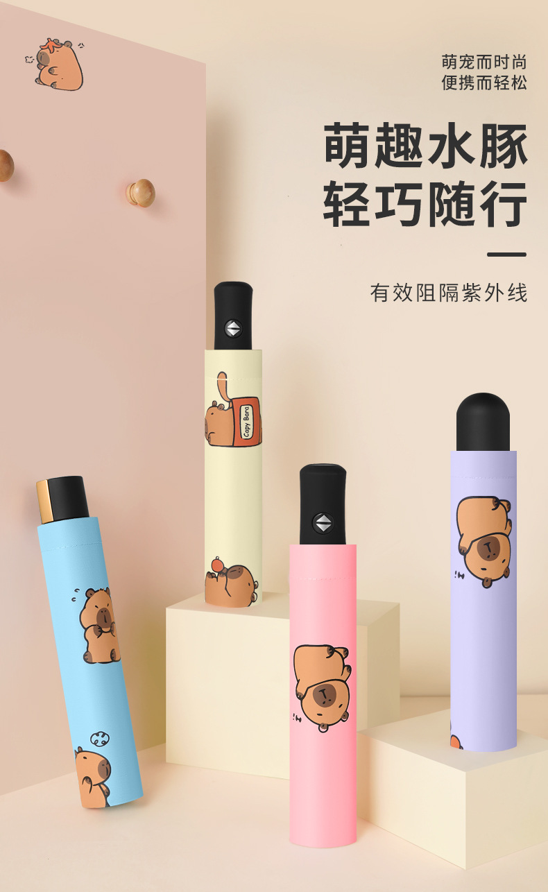 우산 새로운 Kapibala ins 양산 접이식 우산 비 또는 빛 태양 보호 UV 보호 휴대용 완전 차광