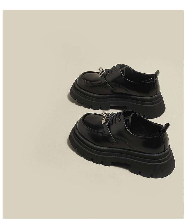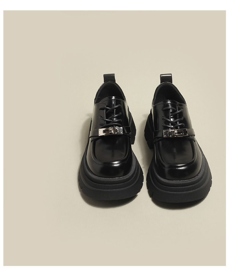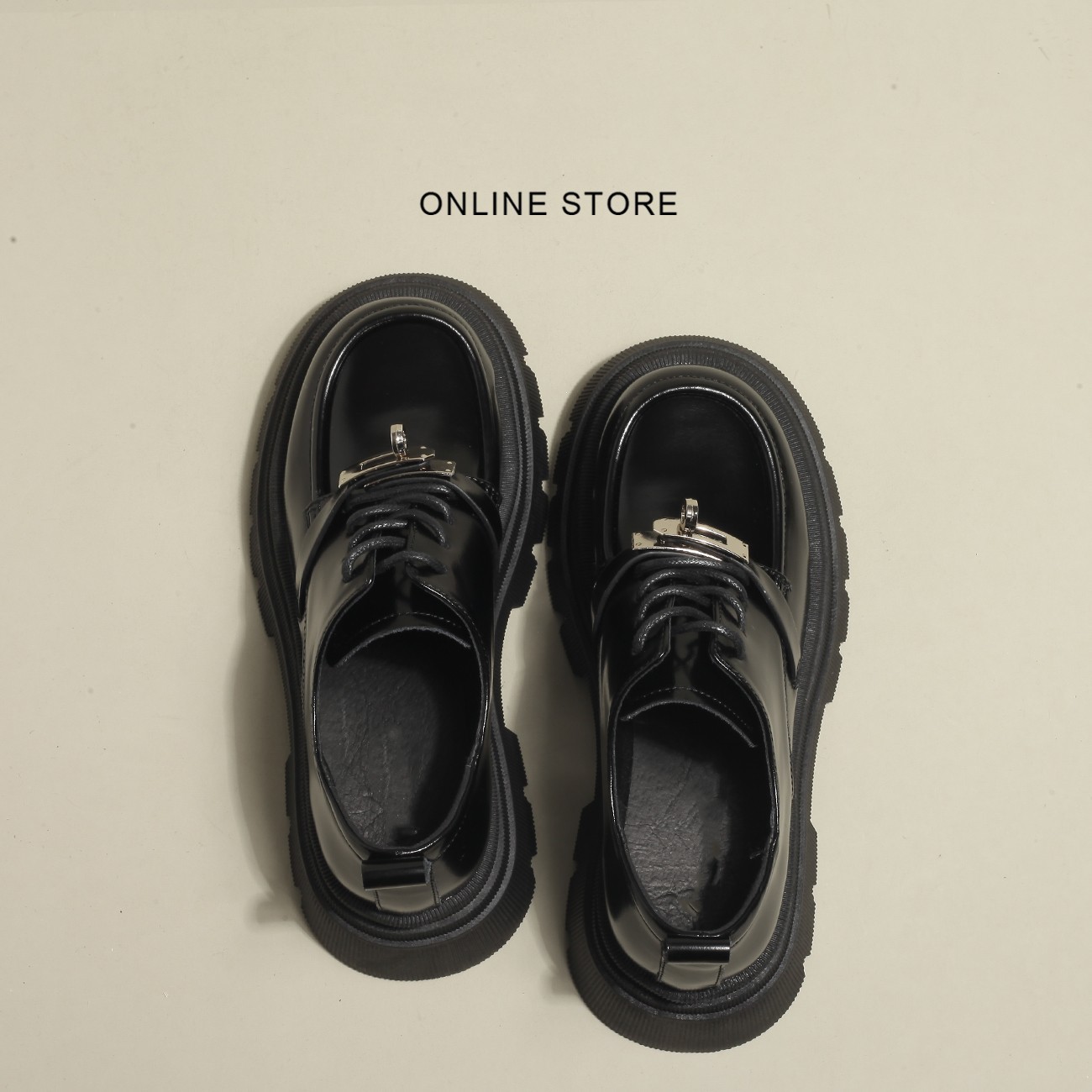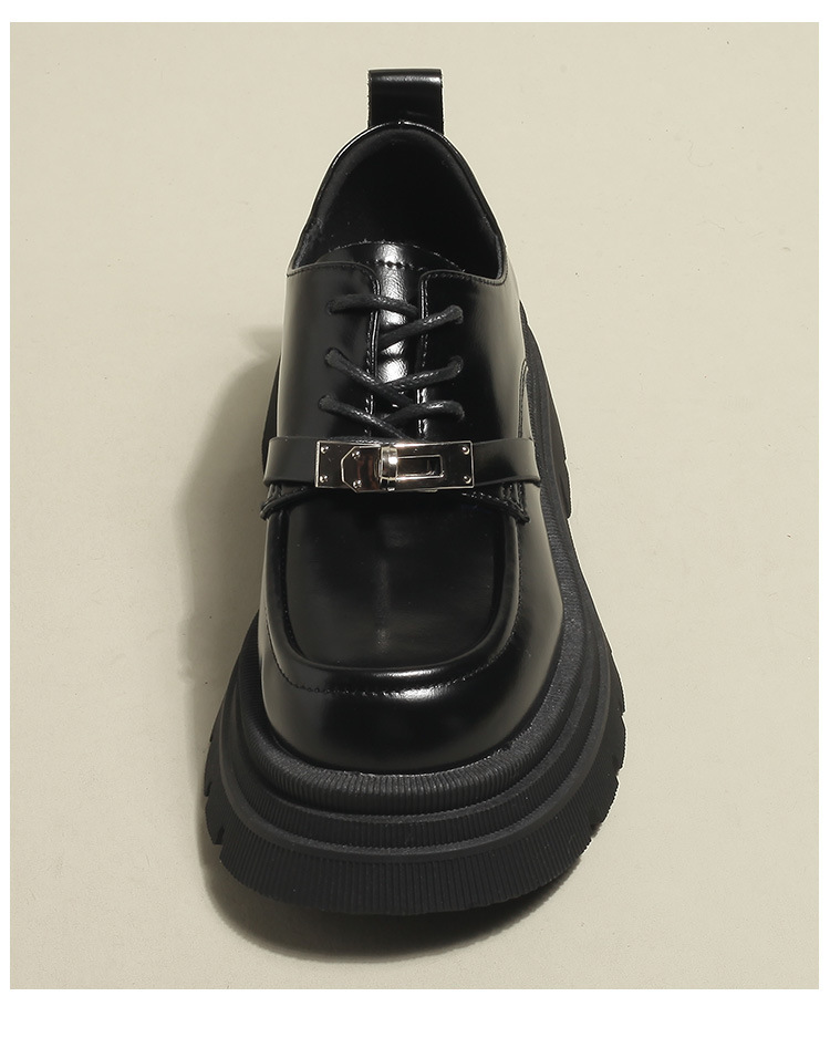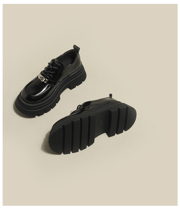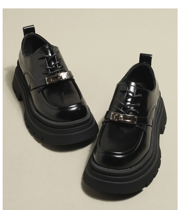 검은 두꺼운 밑창 로퍼 여성의 봄과 가을 새로운 2024 폭발 영국 스타일의 부드러운 밑창 로퍼 두꺼운 가죽 신발스토어 가기